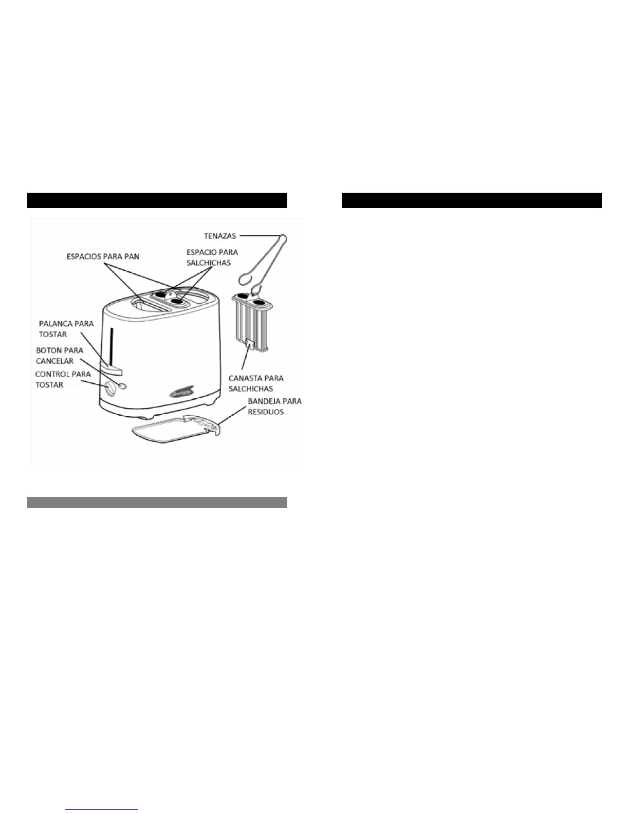 PRECAUCION: Nunca use el tostador sin que estén la Canasta para Salchichas