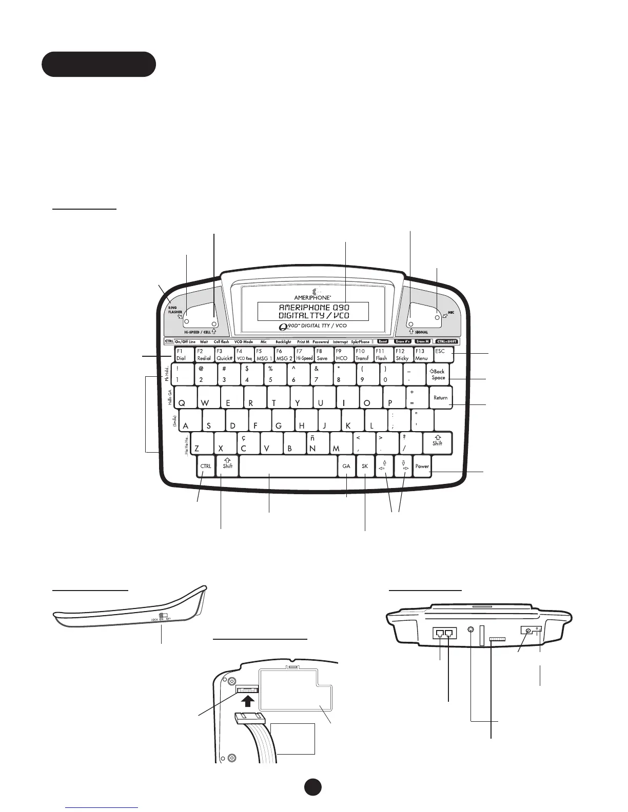 Ameriphone Q90D - Q90 D Features Overview; Top Side Features; Side and Bottom Features