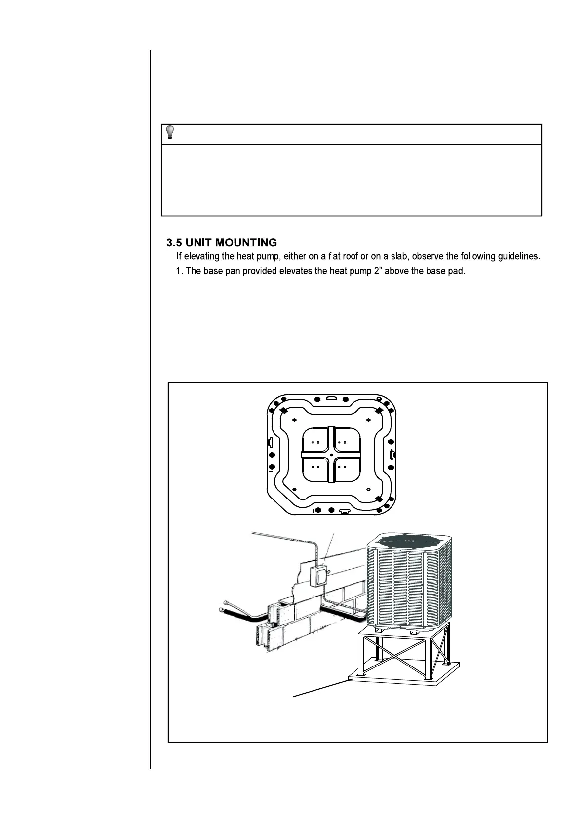 2 . If elevating a unit on a flat roof , use 4”× 4”(or equivalent) stringers