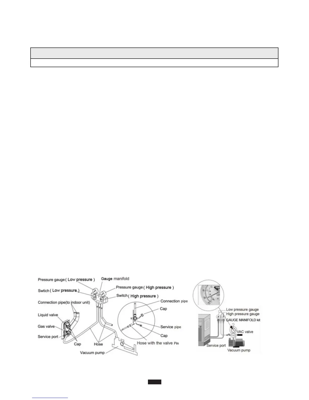 Do not purge the air with refrigerant. Use a vacuum pump to vacuum the installation!