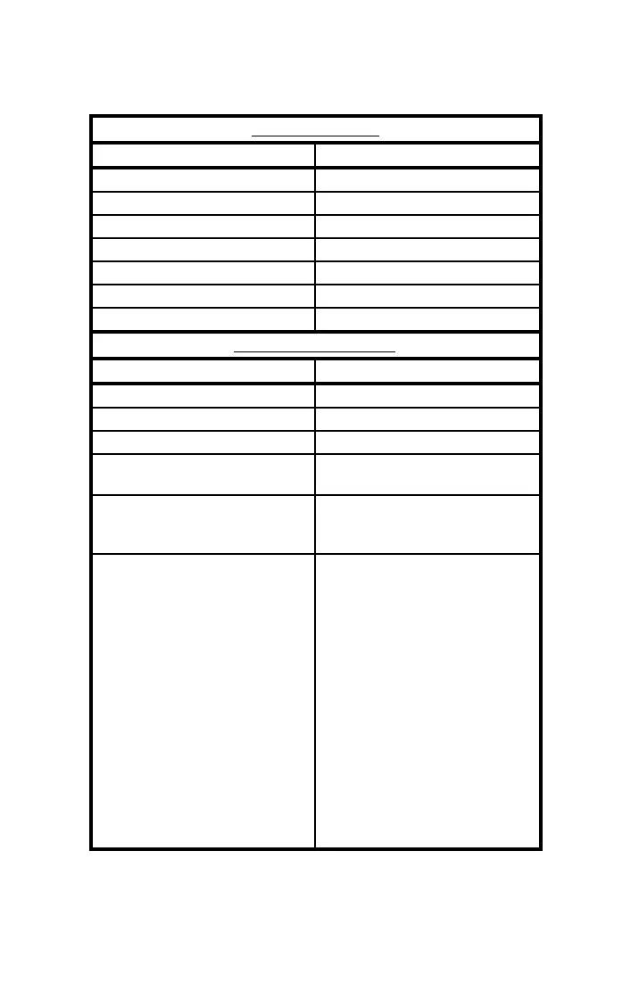 PARAMETER FACTORY SETTINGS