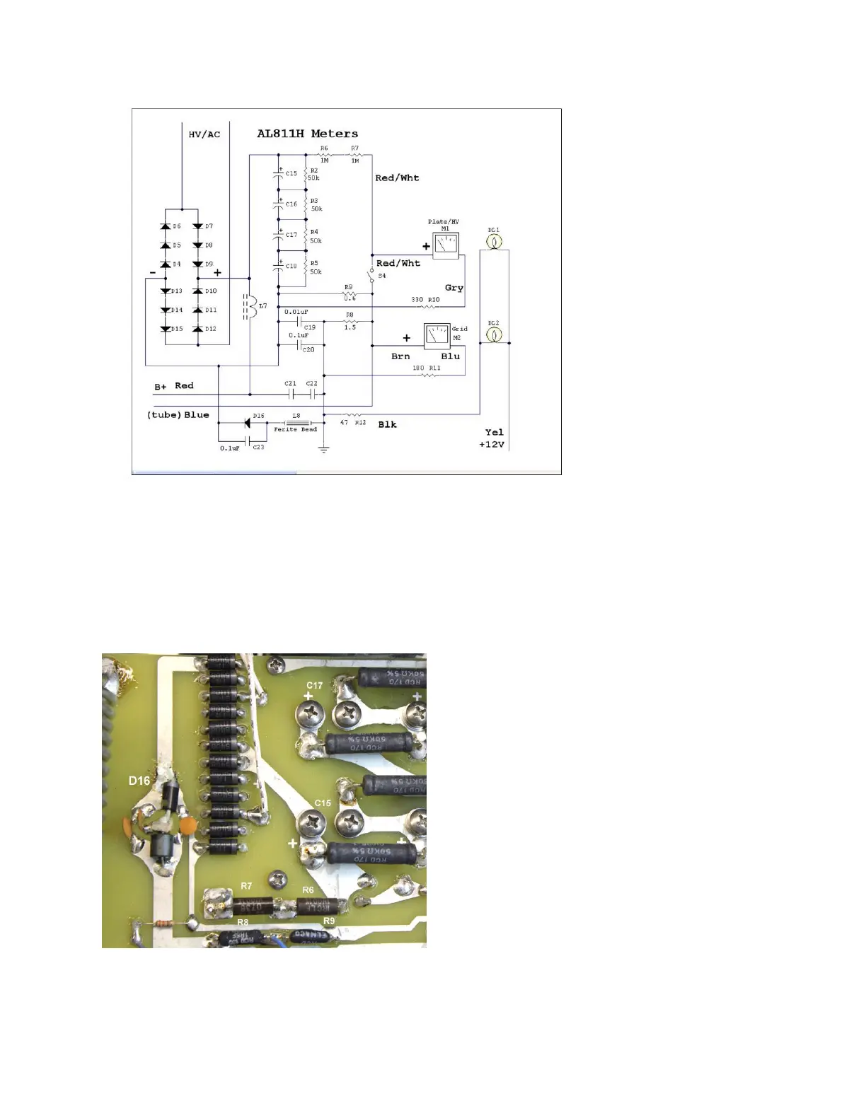 harmlessly bypassing meters. There is plenty of room to solder. The large rectifier diode in this