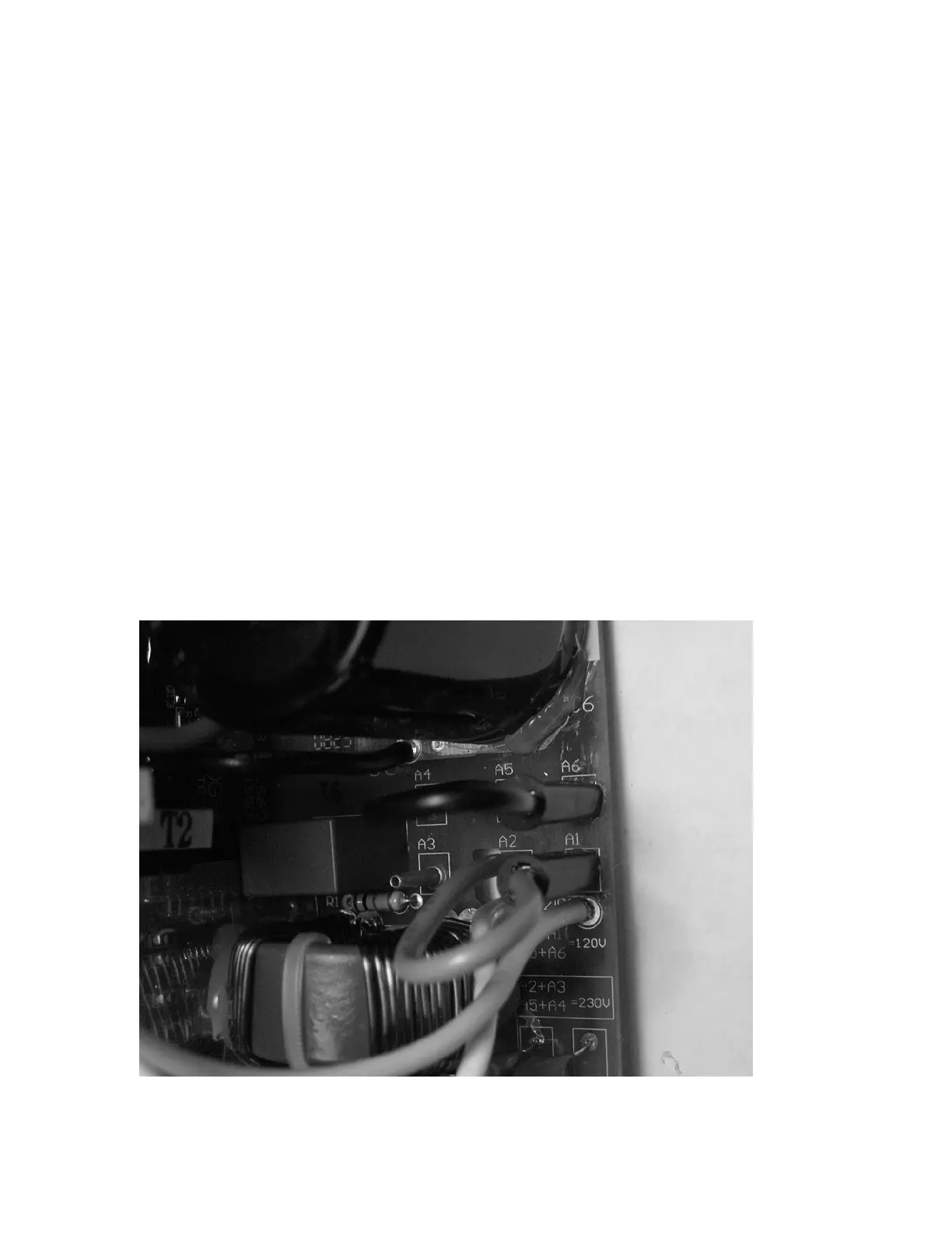 jumpers. The 120V position (A5 to A6 and A2 to A1) will allow the power supply to