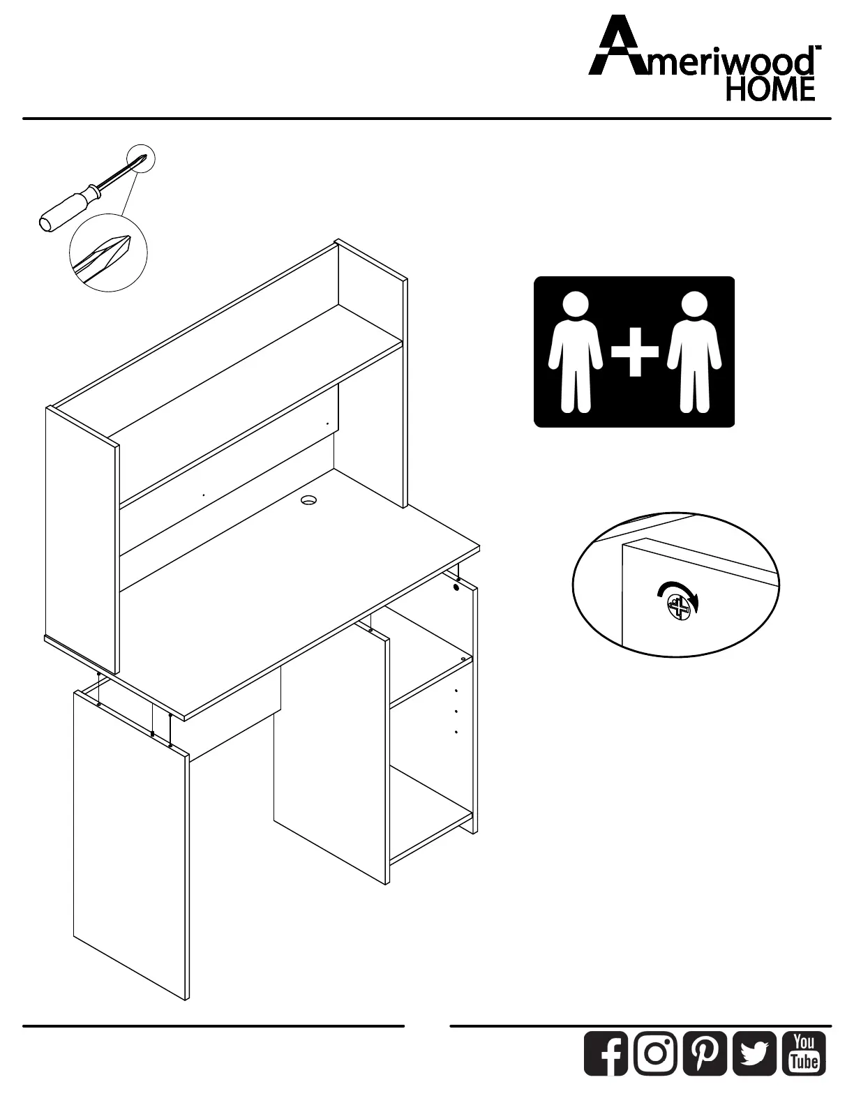 Ameriwood HOME 3761412EBL - Hutch and Door Assembly