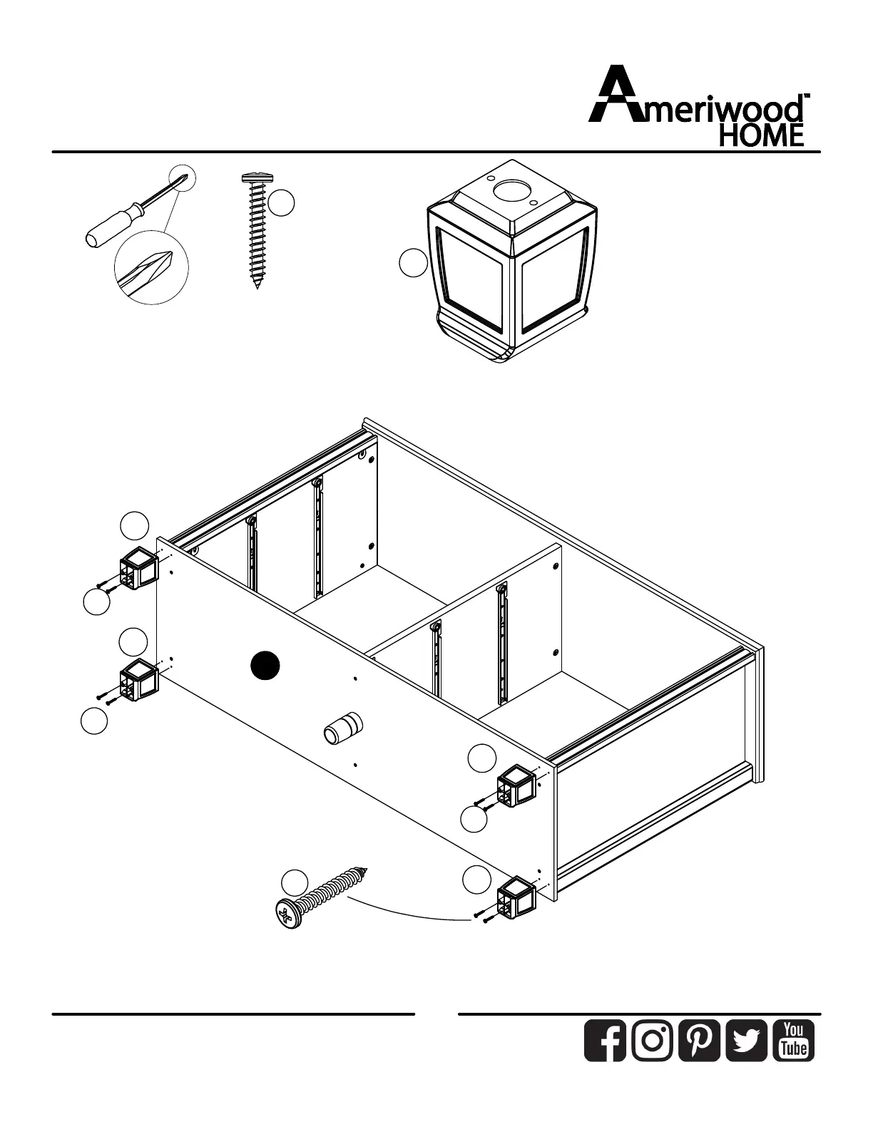 Usingtwoscrews(9)perfoot(17),attachthefourfeet(17)tothebottom(E)asshown.
