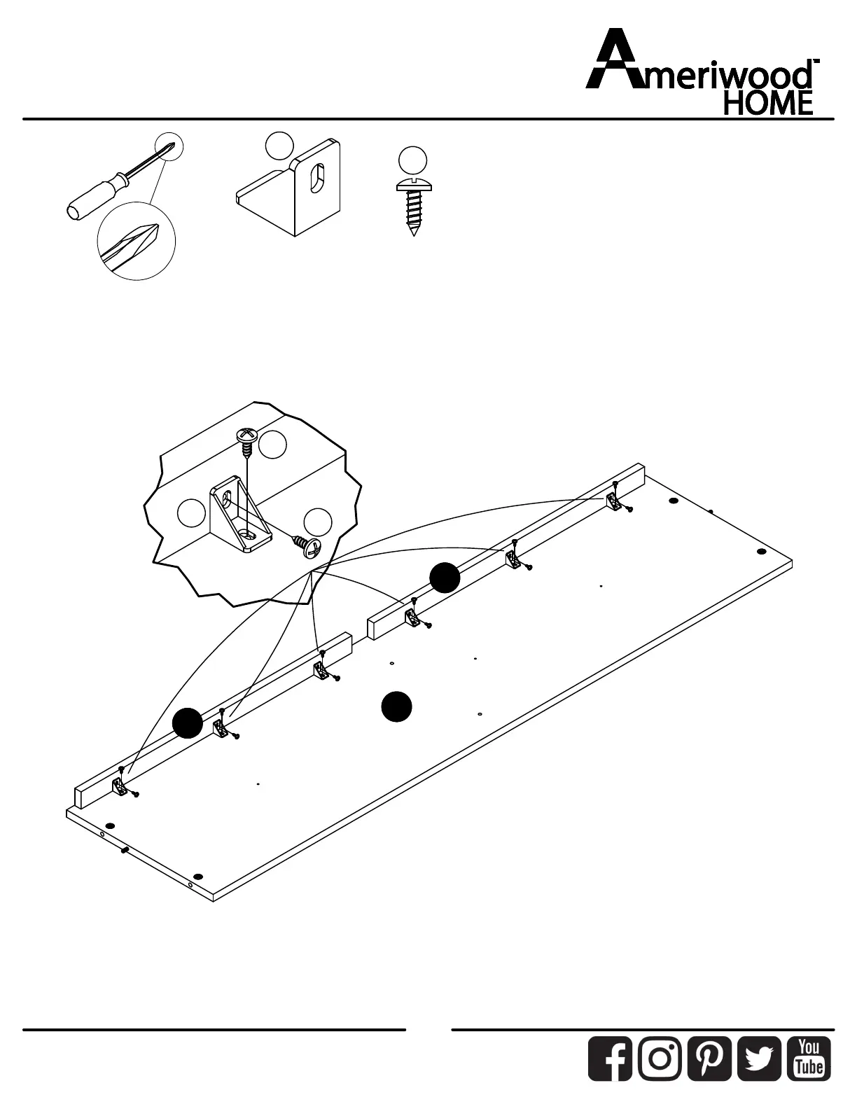 Usinganglebrackets(7)andscrews(9),attachtwohorizontalrails(J)tothebottom(F)asshown