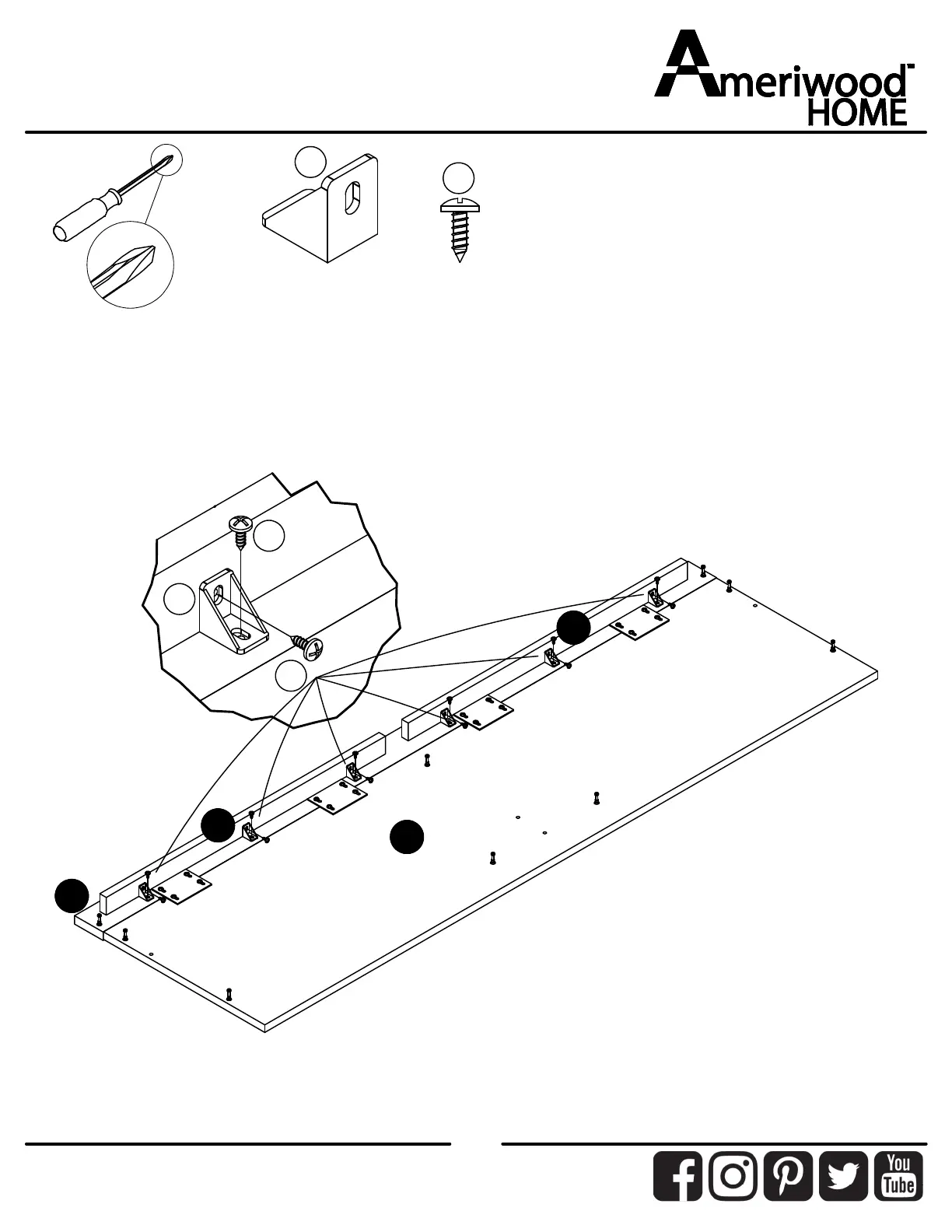 Usinganglebrackets(7)andscrews(9),attachtwohorizontalrails(J)totheTVrail(H)asshown.