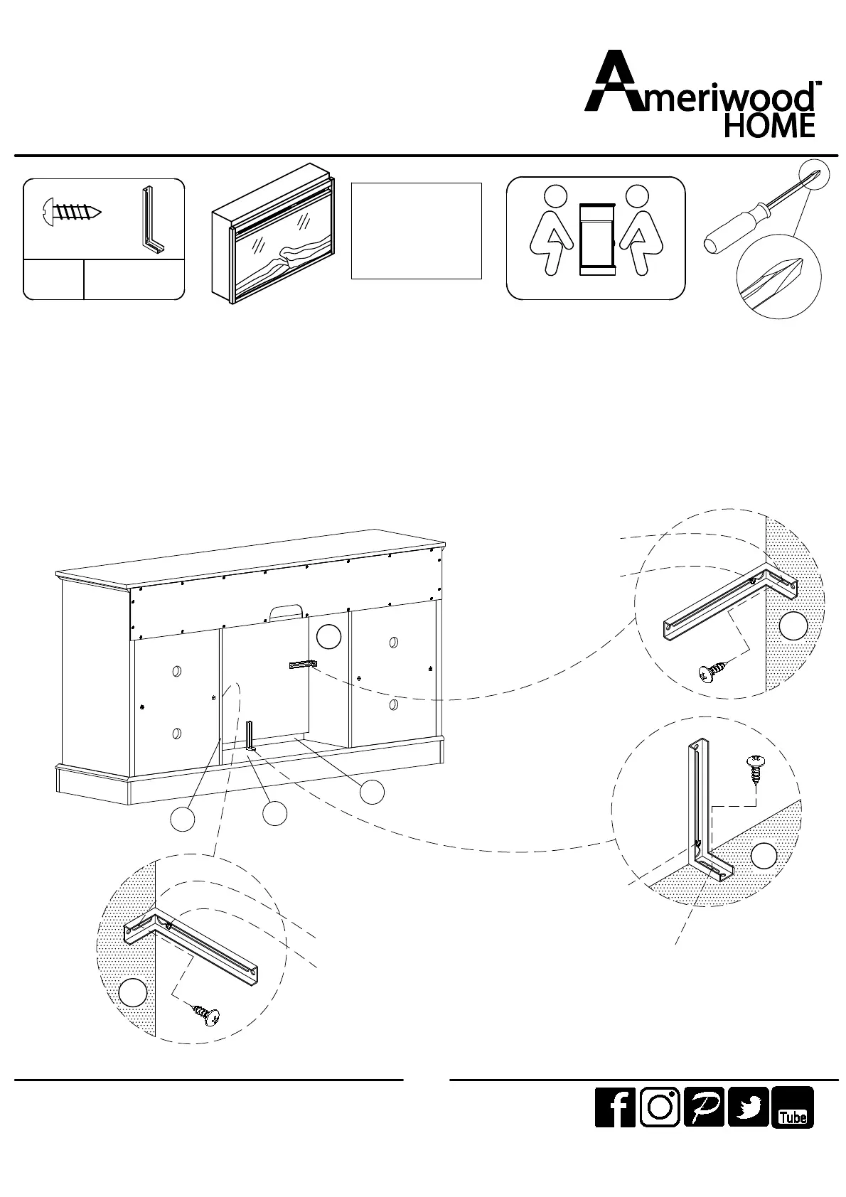 23.2 Slide the L-Brackets (3pcs) into pre-assembled bolts on rear panel of the fireplace.