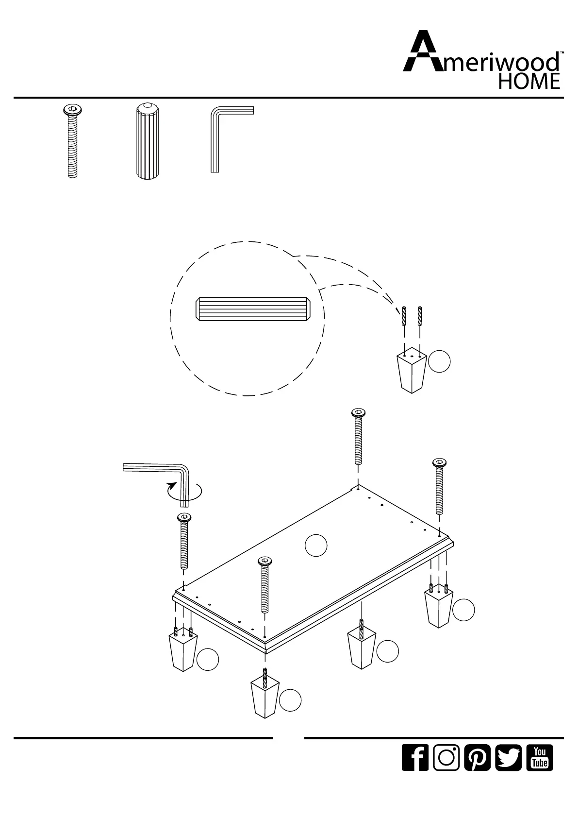 Ameriwood HOME Ellington Double Door Cabinet - Assembly Step 1; Attach Feet to Bottom Panel
