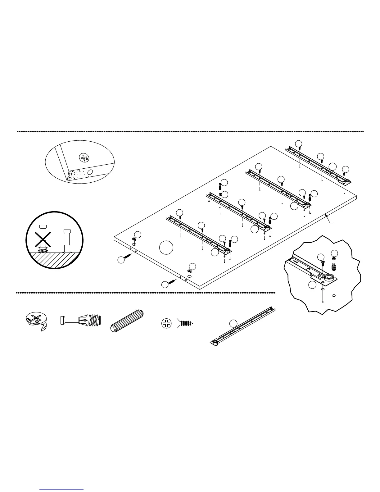 1. Screw-in cam bolts must be screwed down flush.