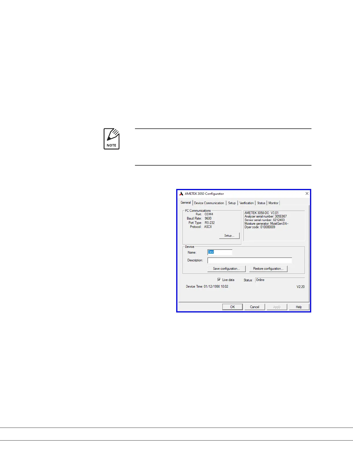 for the analyzer and to congure the PC Communications (Figure 3-1). With