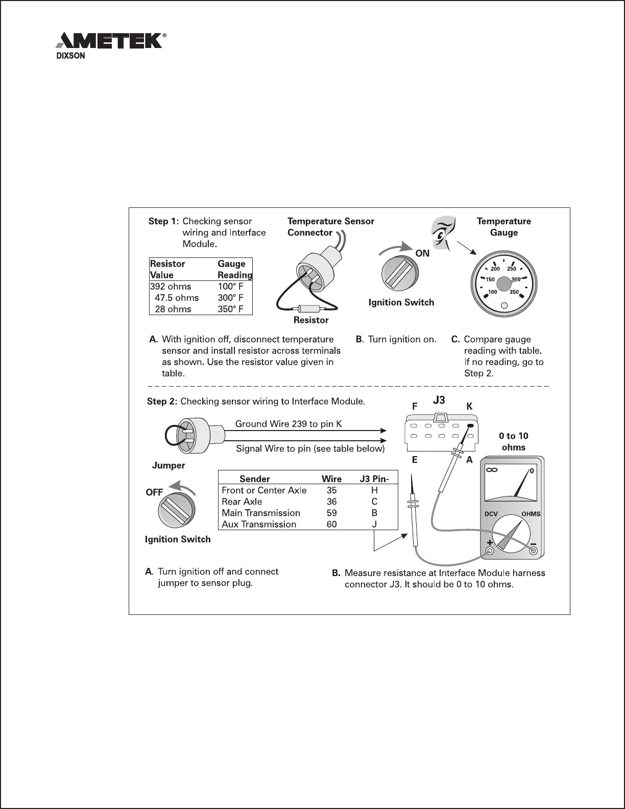d. Check the sensor wiring to the Interface Module as shown in Step 2 of