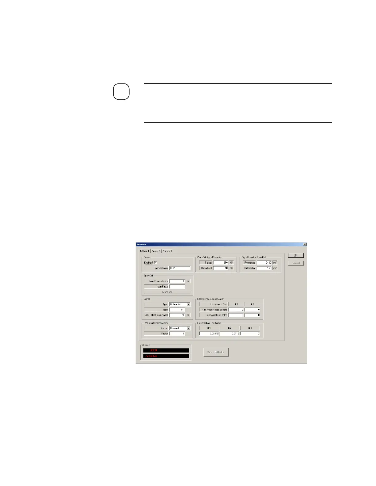 Sensor 1 dialog box,