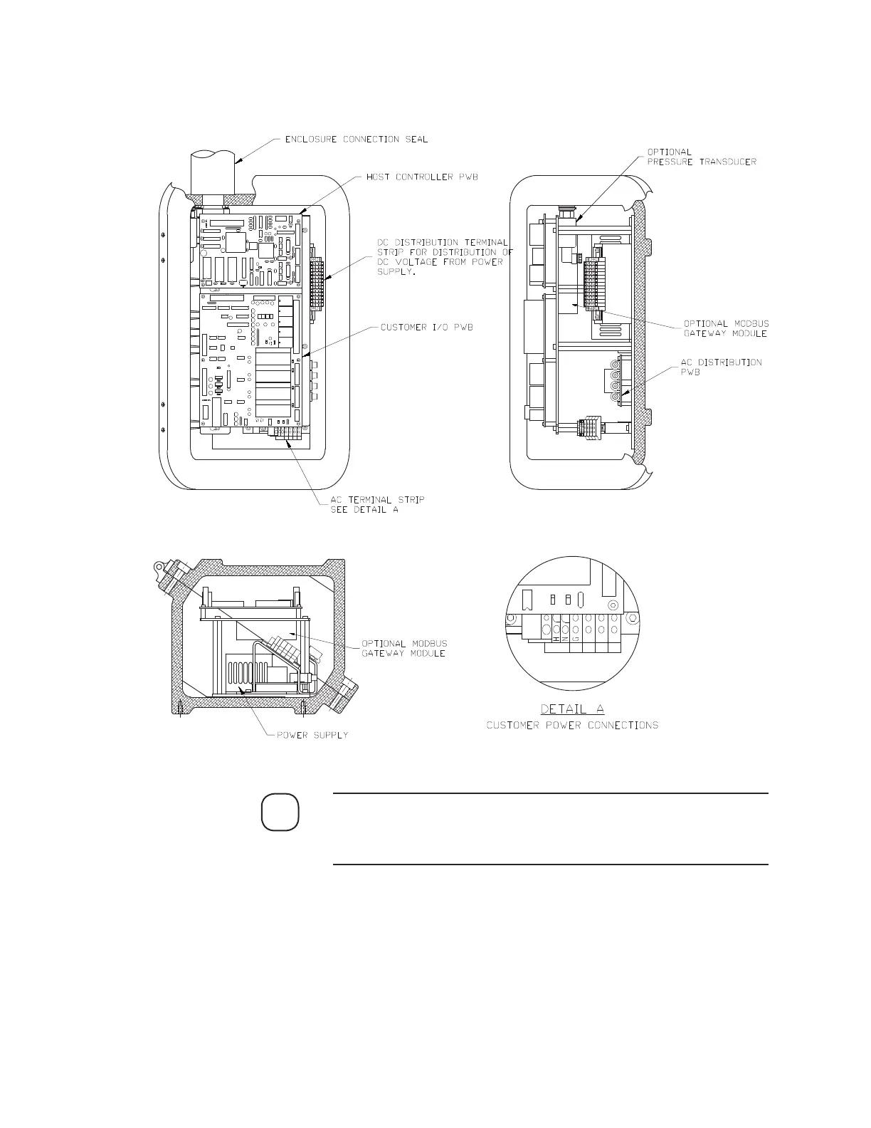 See “Customer Connection, I/O Board” and “Conduit Entries and AC
