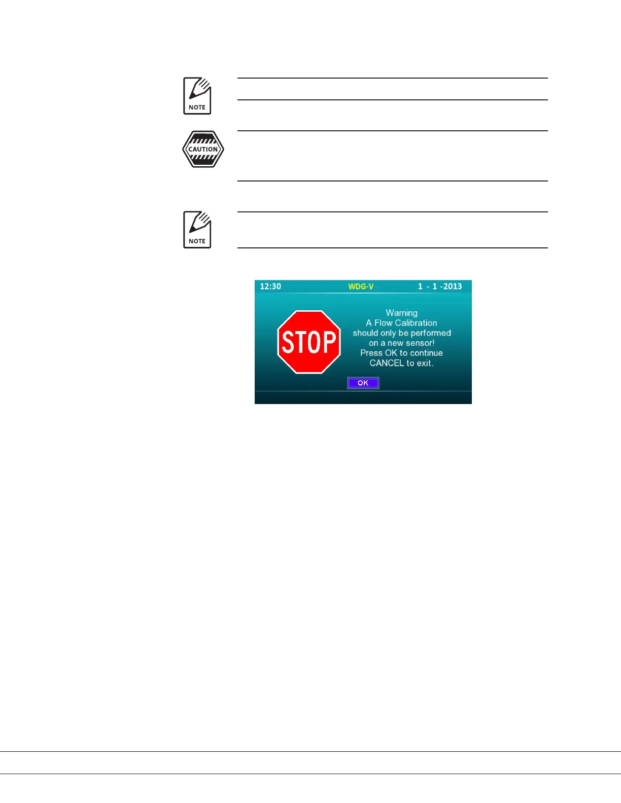 5. The Flow Sensor Zero Calibration screen displays. Press ENTER/MENU to