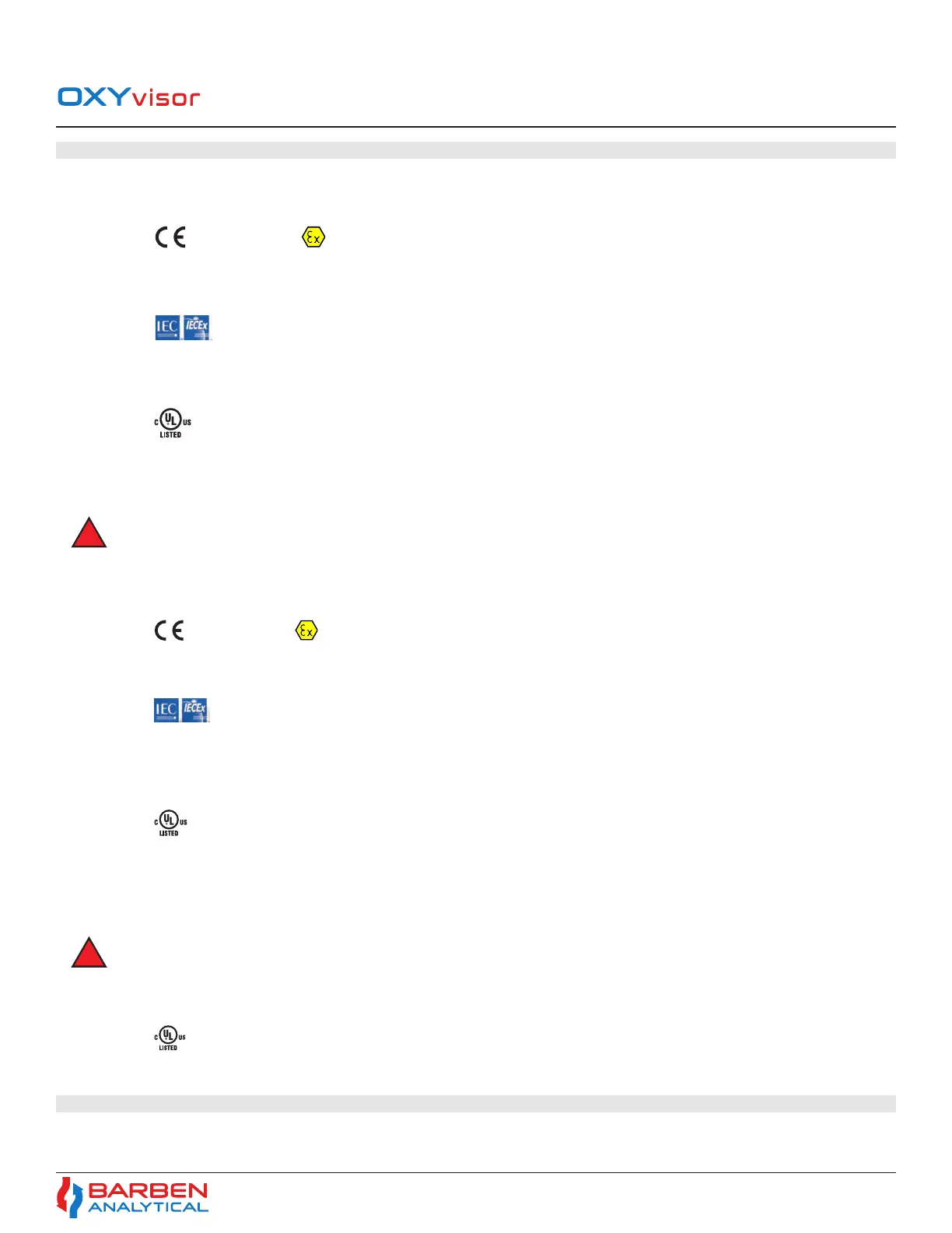The OXYvisor is certied as Process Control Equipment for use in Zone Classied Hazardous Locations - Zone 2, Group IIC