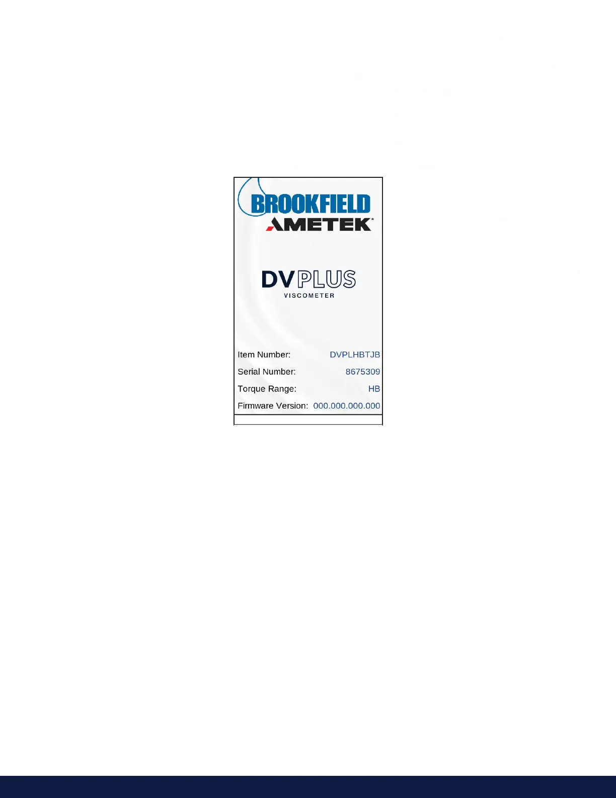 The DVPlus Viscometer will go through a Power Up sequence when the power is turned on. The Viscometer will