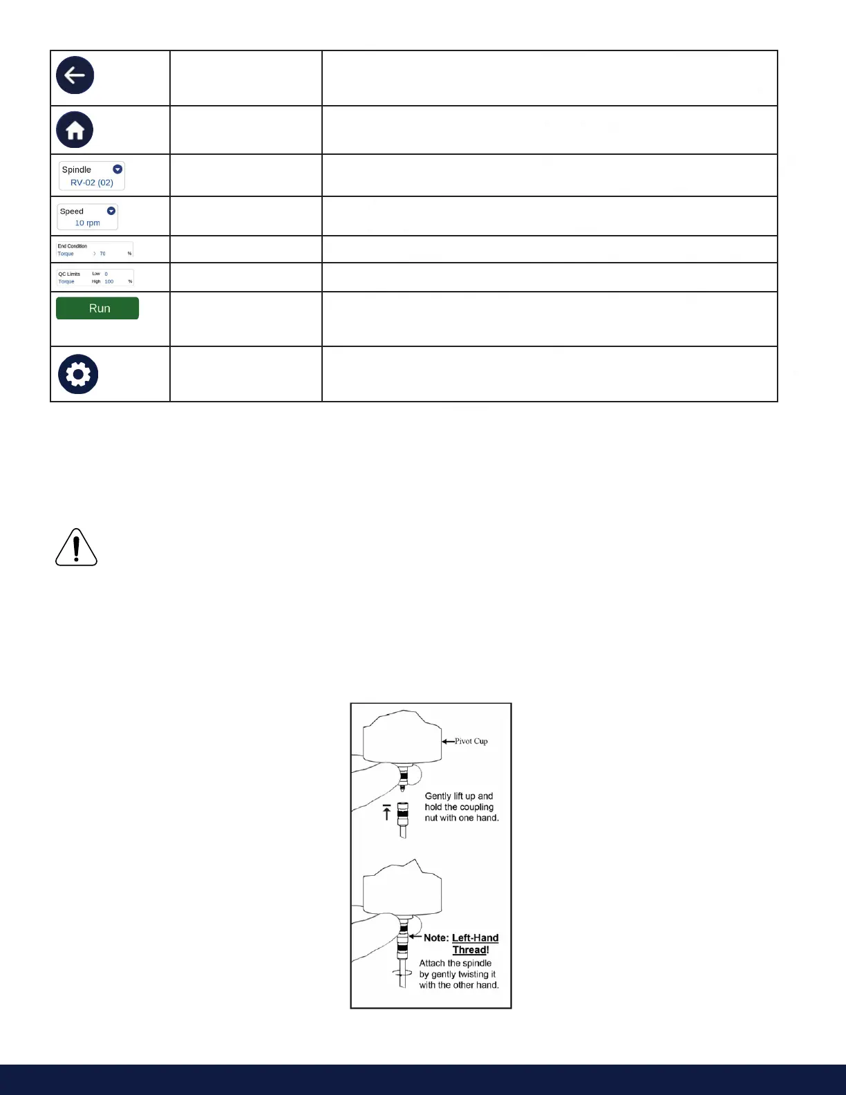 The threaded spindles are attached to the Viscometer by screwing them onto the coupling nut on the lower shaft