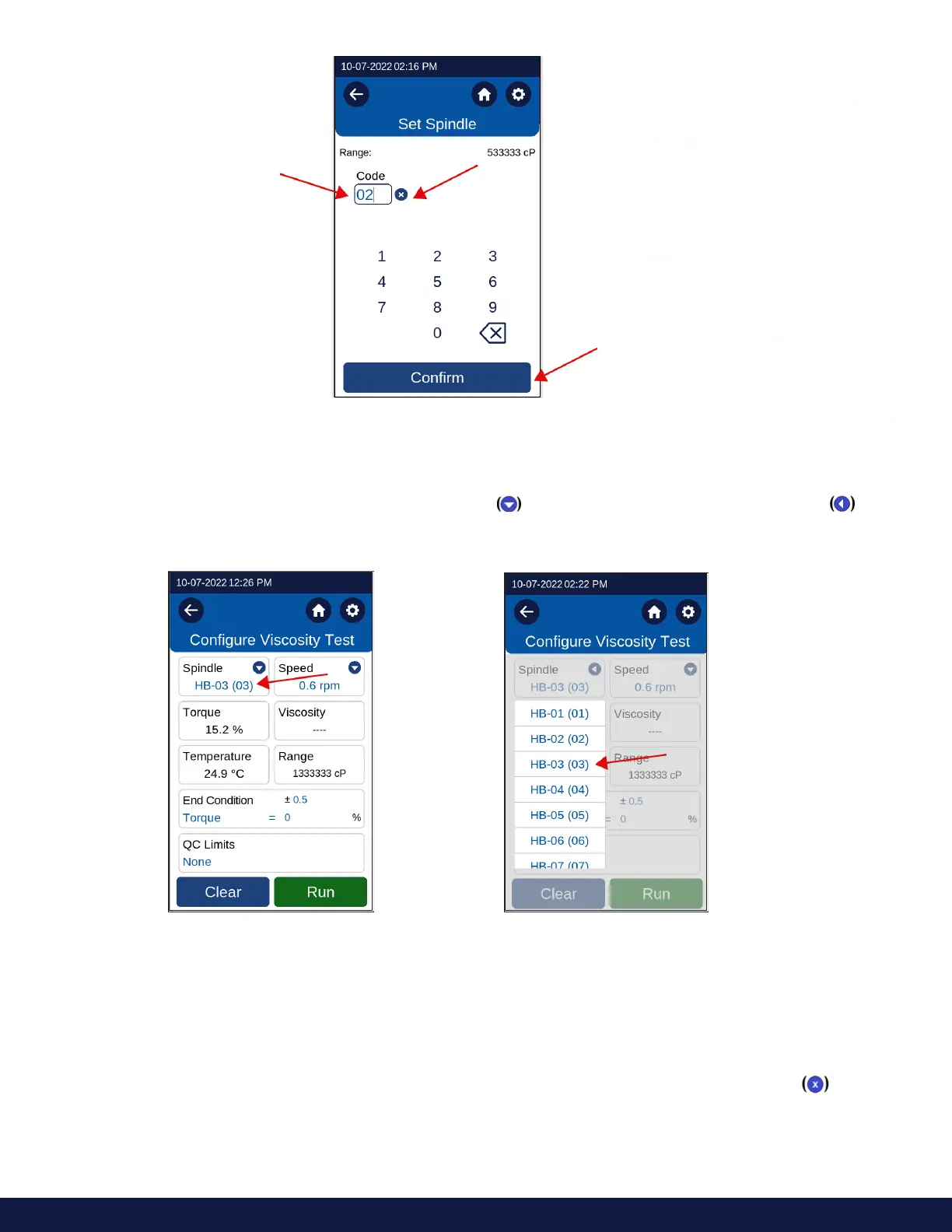 If using the scrollable spindle list, press the dropdown button in the Spindle box to open the spindle list .