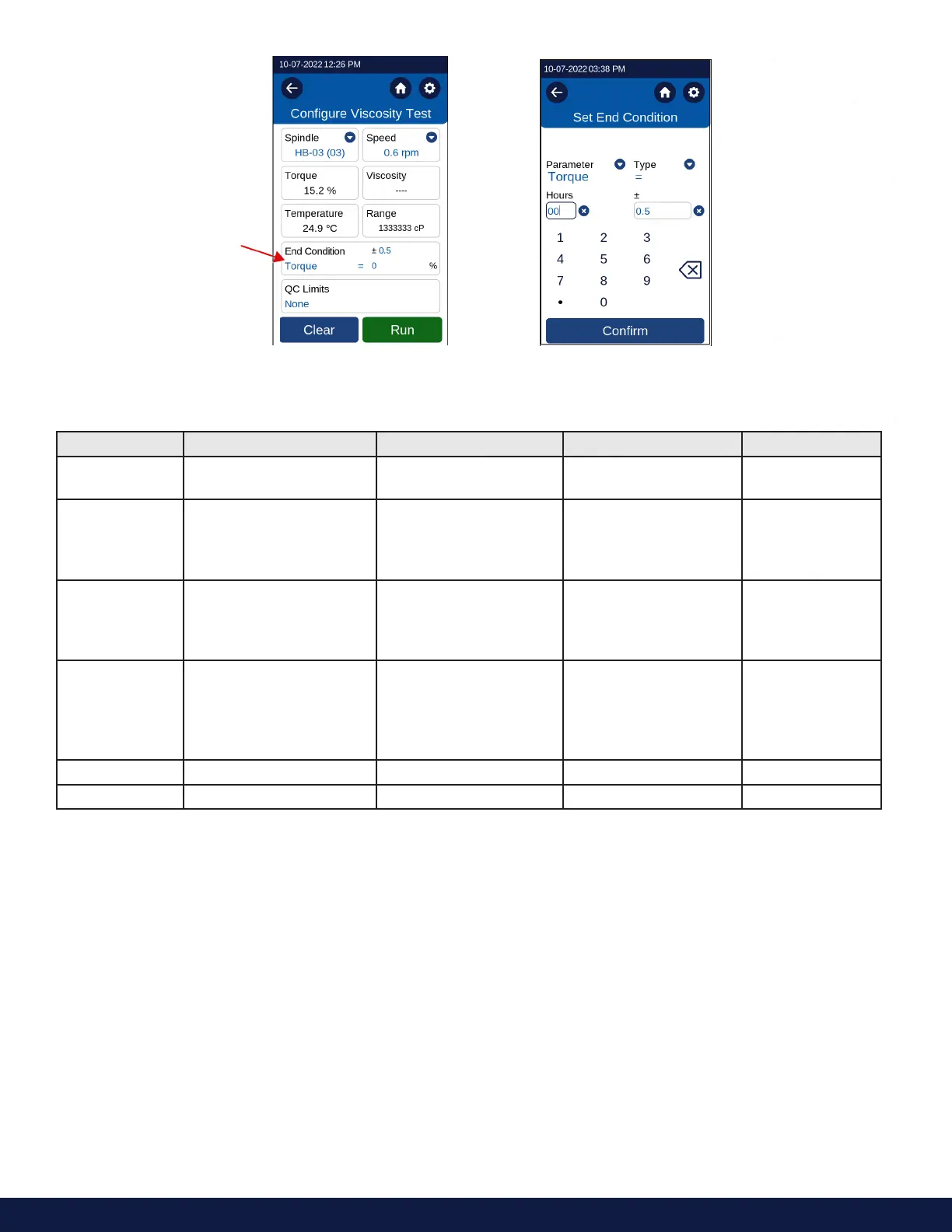 If “None” is selected, the DVPlus will run the test until stopped by the operator. The End Condition "Time" cannot be