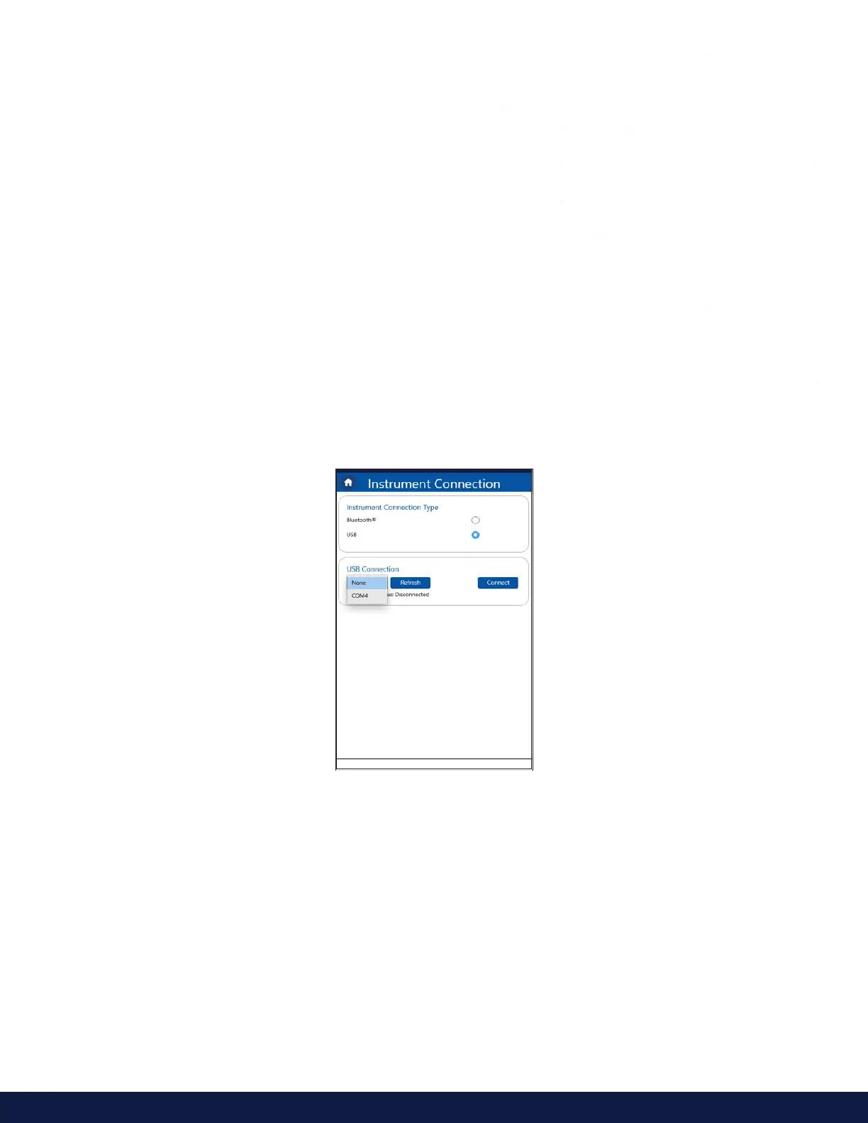 • Use dropdown control to select available USB port. Click Refresh if no COM Ports are listed (see Figure