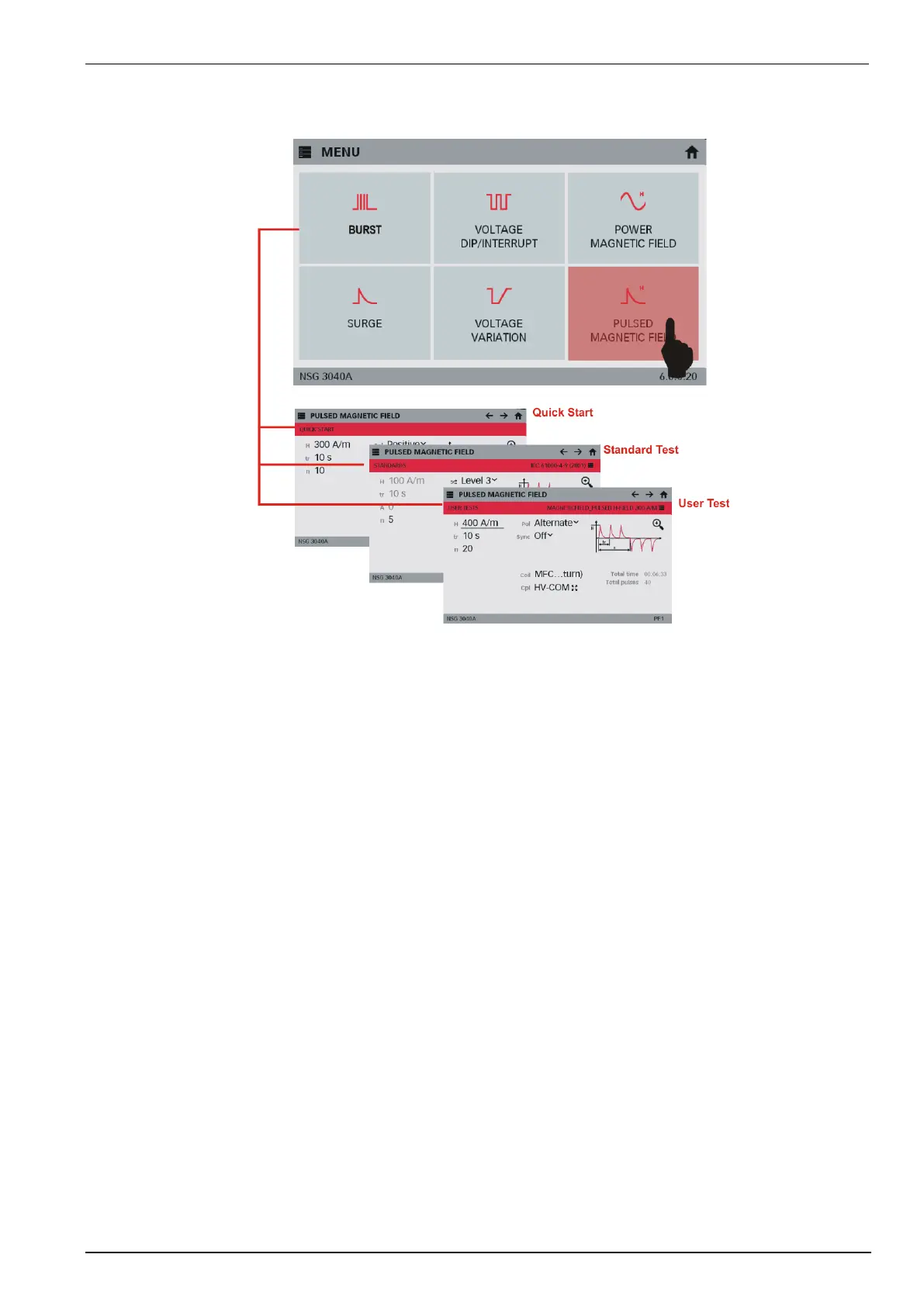 The Magnetic Field menu offers different test routines for pulsed magnetic testing.