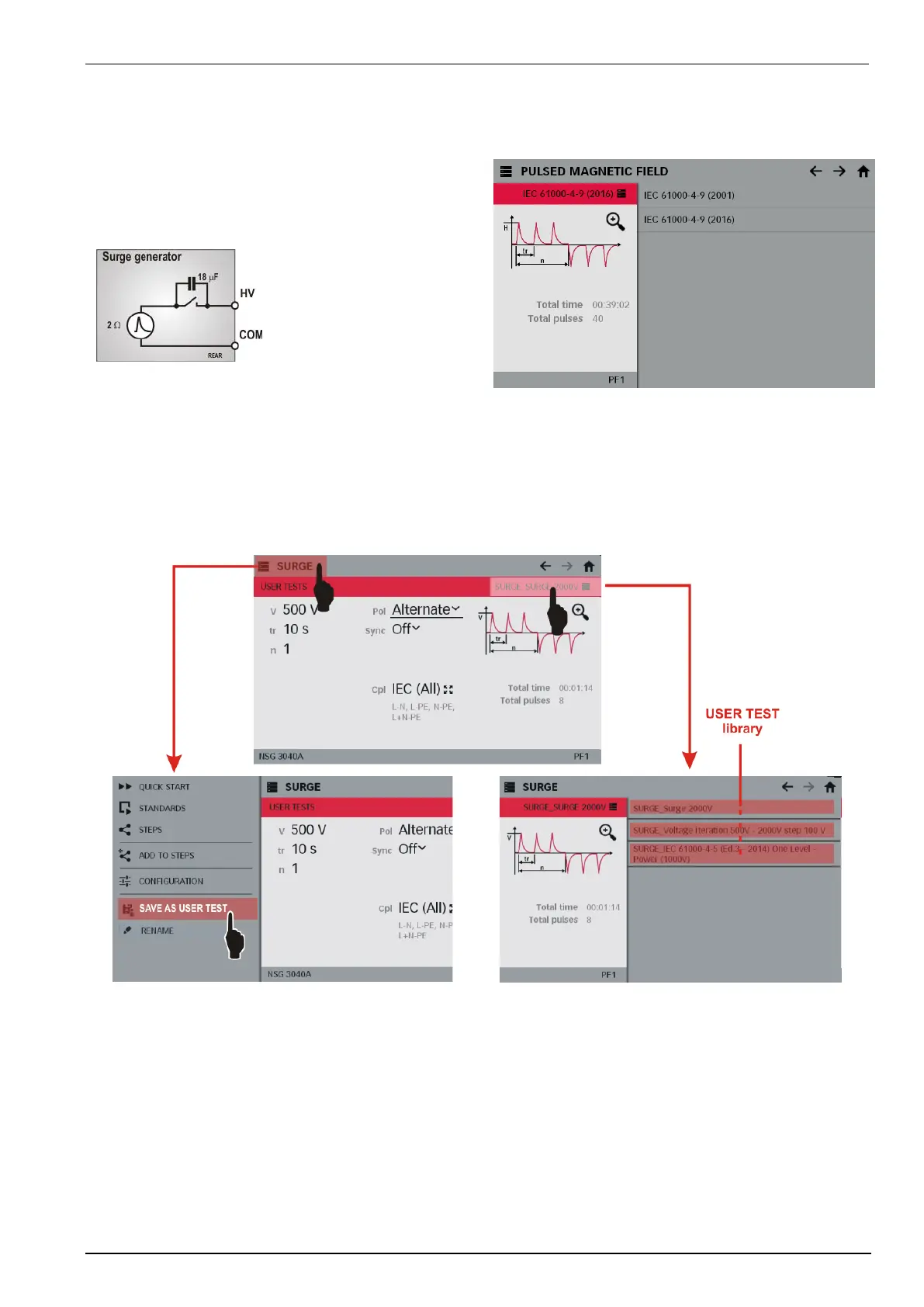 SAVE AS USER TEST Save the actual test as user test. The user defines the name of the test