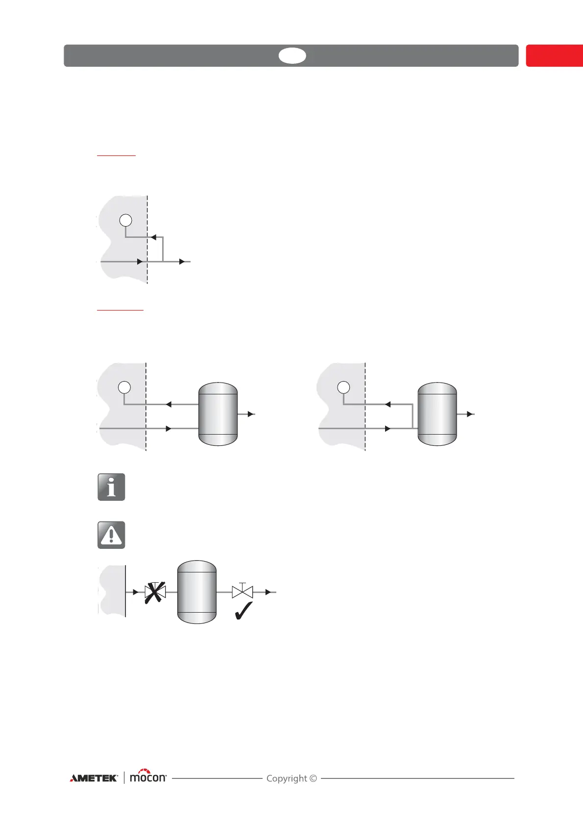 The mixer can be installed for either "Flow" or "Buffer" operation. The main difference is in the