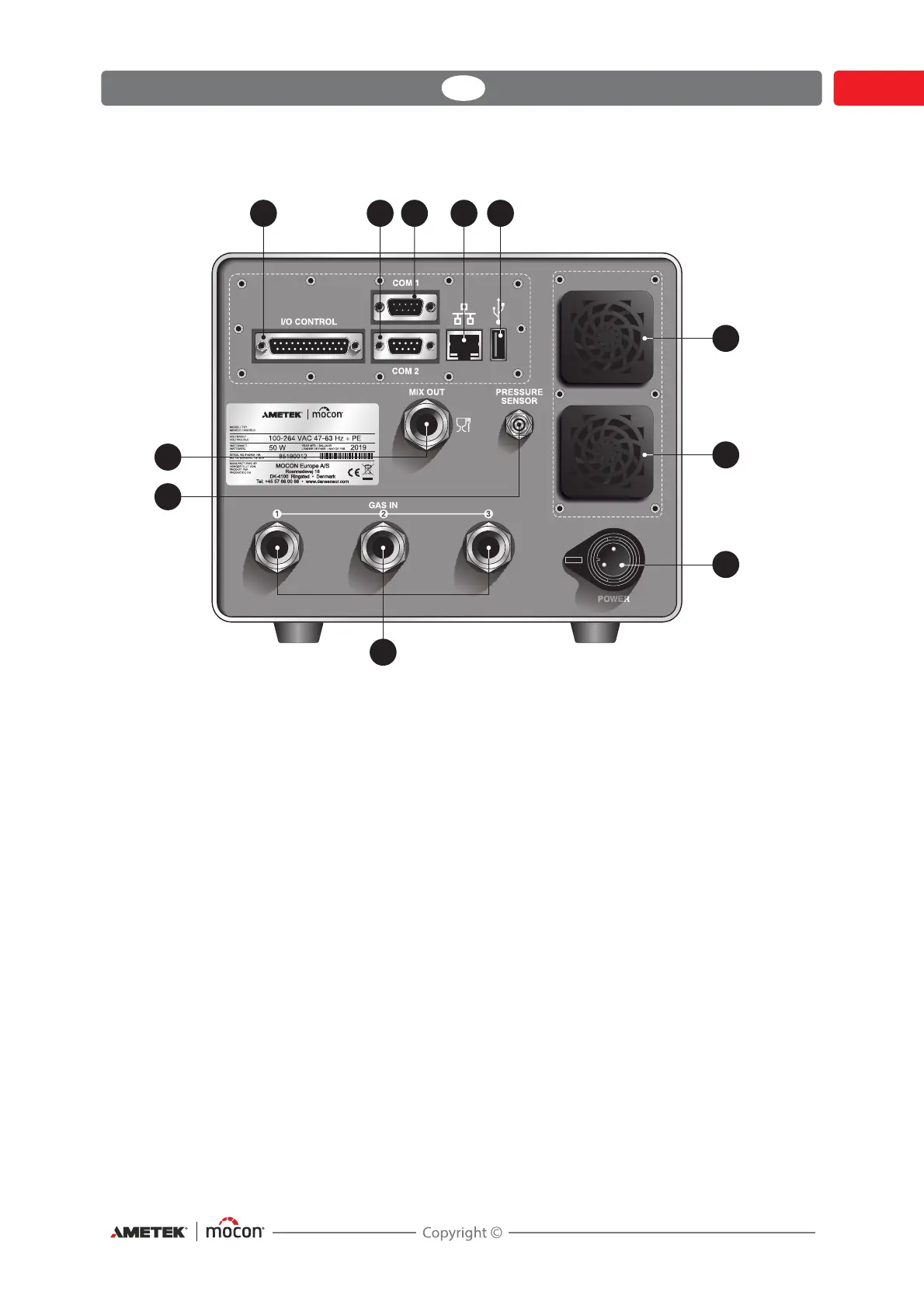 Connectors for inlet gasses (3-Gas mixer illustrated)