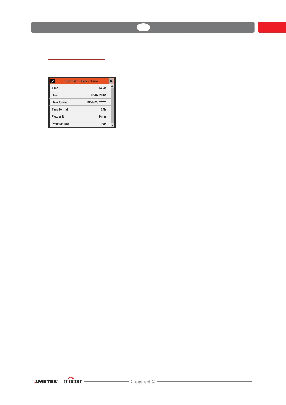Selecting Format/Units/Time from the General setup menu will display a screen showing
