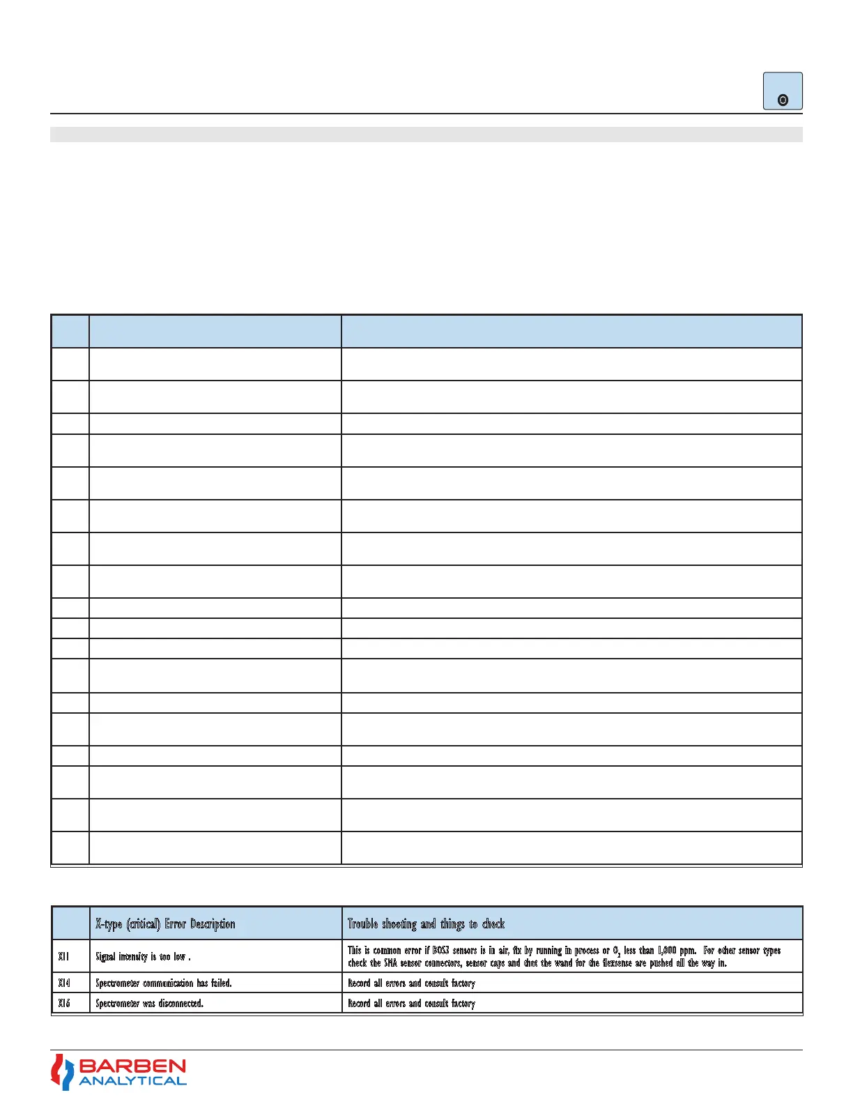 The analyzer will show any active error codes on the active display, along with recording the error into the