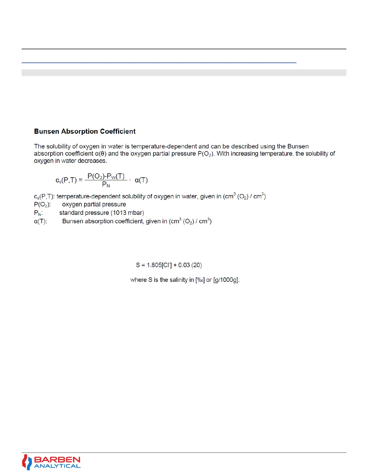 calculates the oxygen concentration using the Bunsen Absorption Coecient. The results closely follow 1984