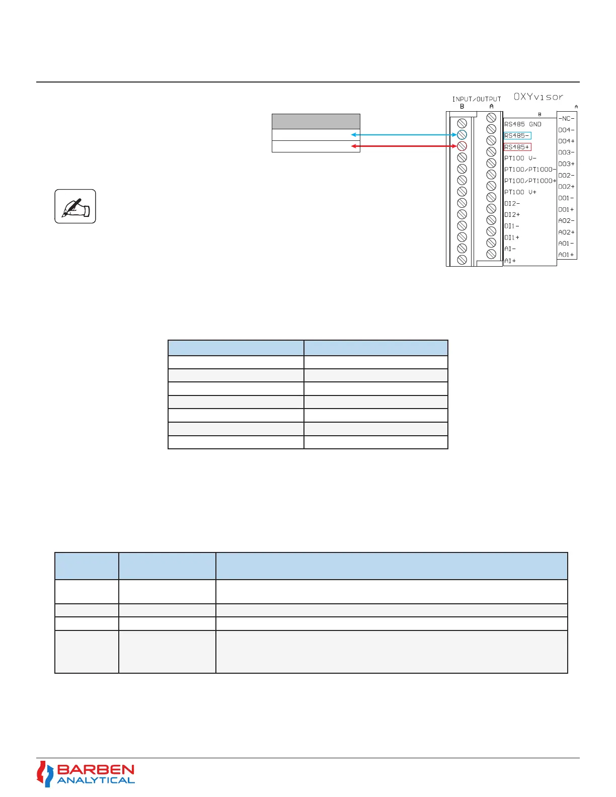 The following setting are used to communicate with the OXYvisor as a Slave Device.