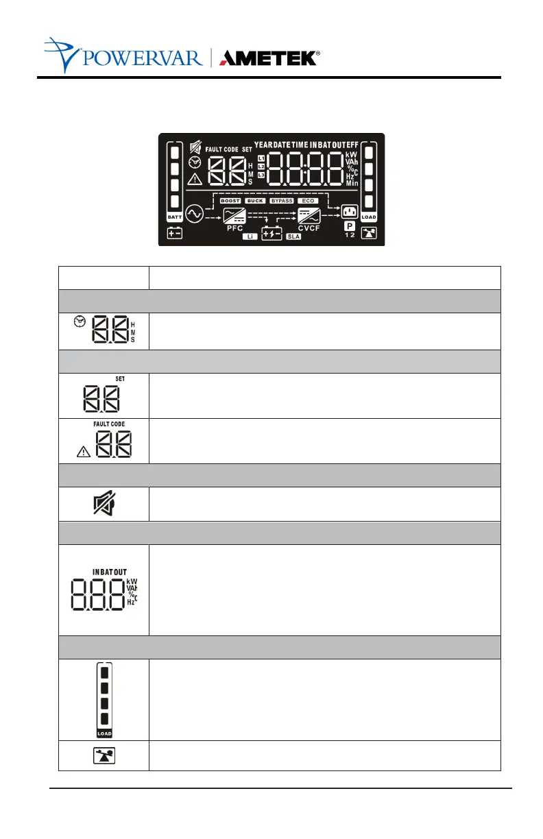 k: kilo, W: watt, V: voltage, A: ampere, %: percent, ℃: