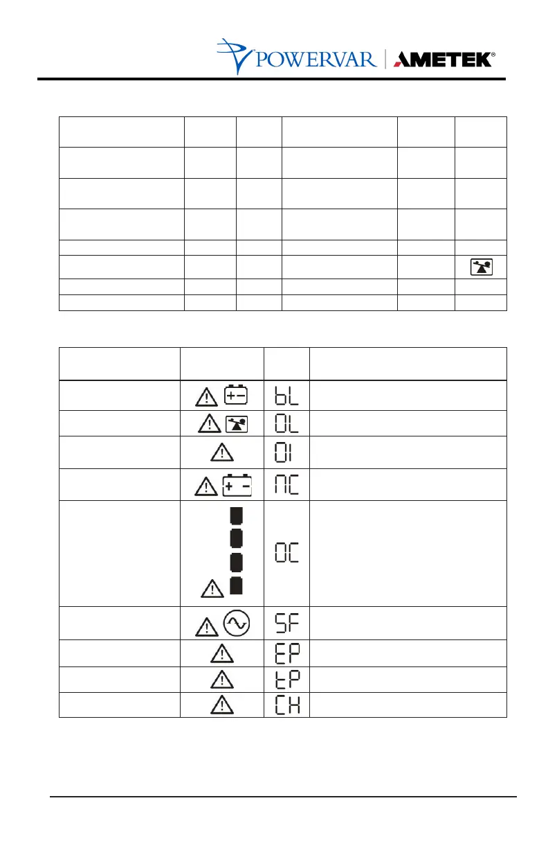 Ametek Powervar Sinergy III 2kVA - 3.7 Faults Reference Code; 3.8 Warning Indicator
