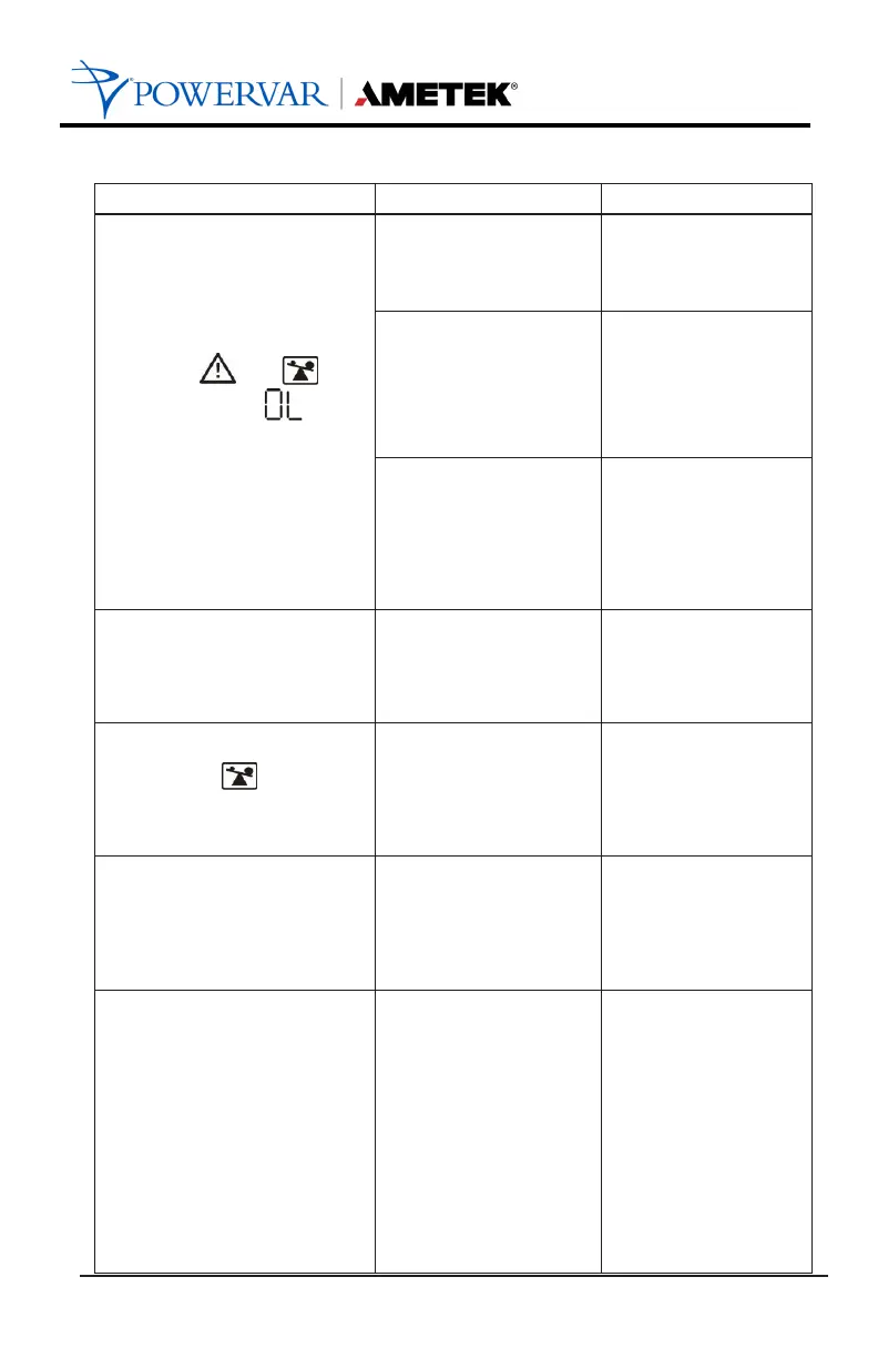 Ametek Powervar Sinergy III 2kVA - Troubleshooting Overload (OL) Indicator; Fault Code 49: Over Input Current; Fault Code 43: Output Overload Shutdown; Fault Code 14: Output Short Circuit