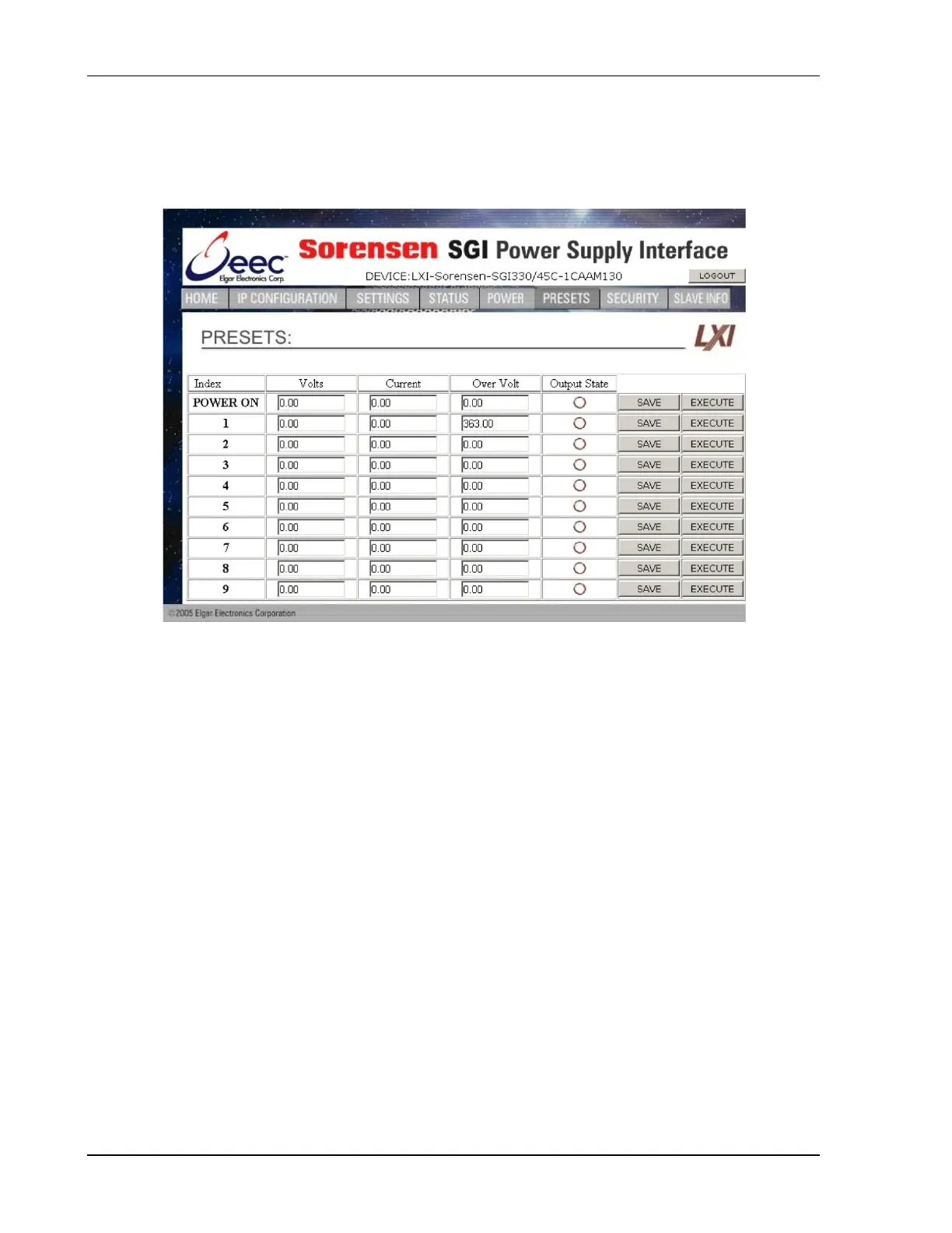 Figure 5-18. SGI Presets Page (not in SGA/SGe)