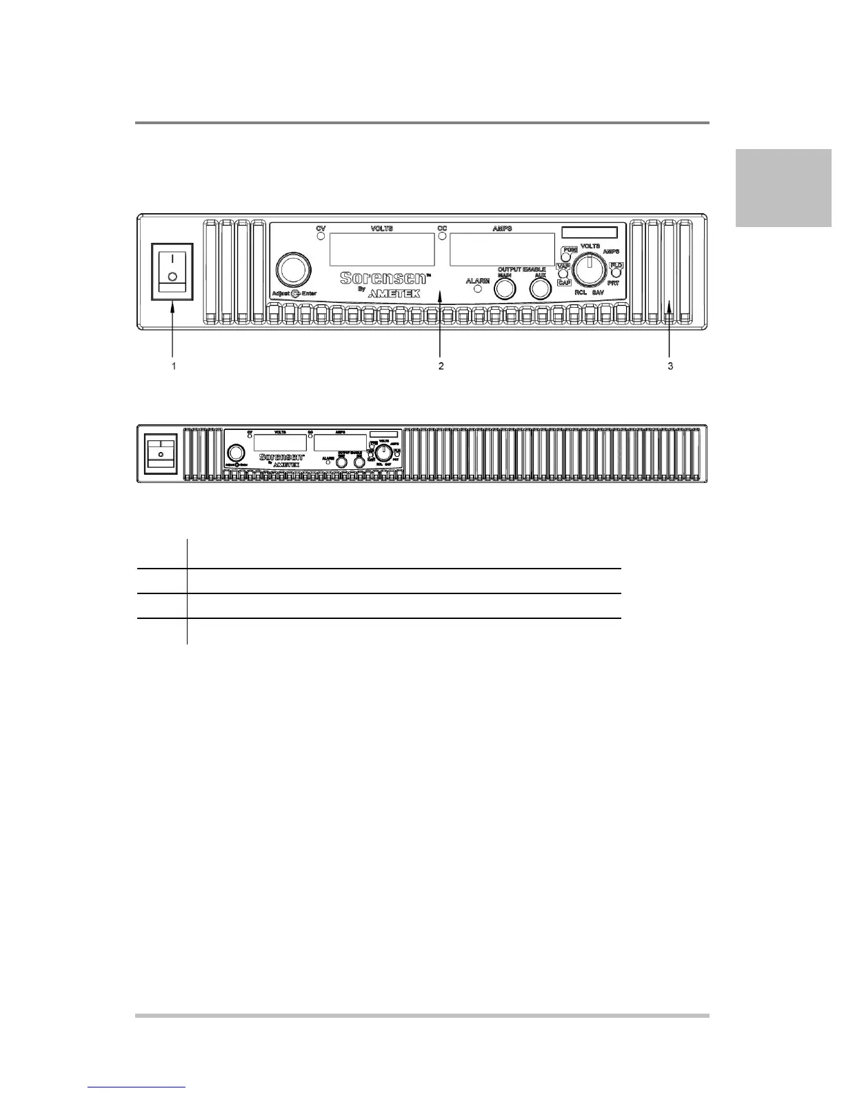 Ametek Sorensen XG 150-10 - Front Panel; Figure 1-1 XG Front Panels (Half Rack, Above; Full Rack, Below; Not To-Scale)