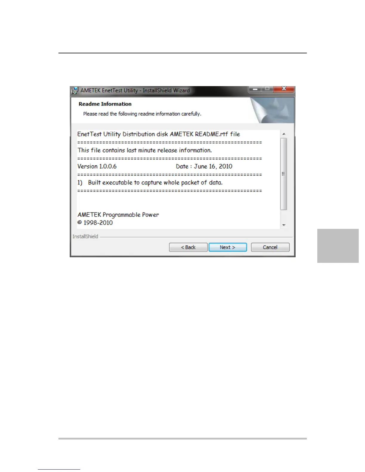 5. Click Next and view any last-minute release information in the README file.