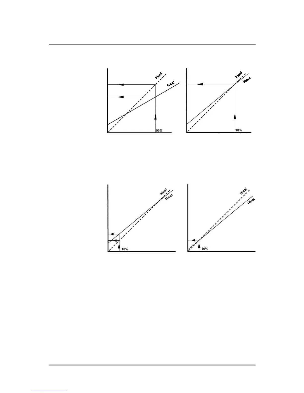 Adjust the gain so that the real line and ideal line intersect at a