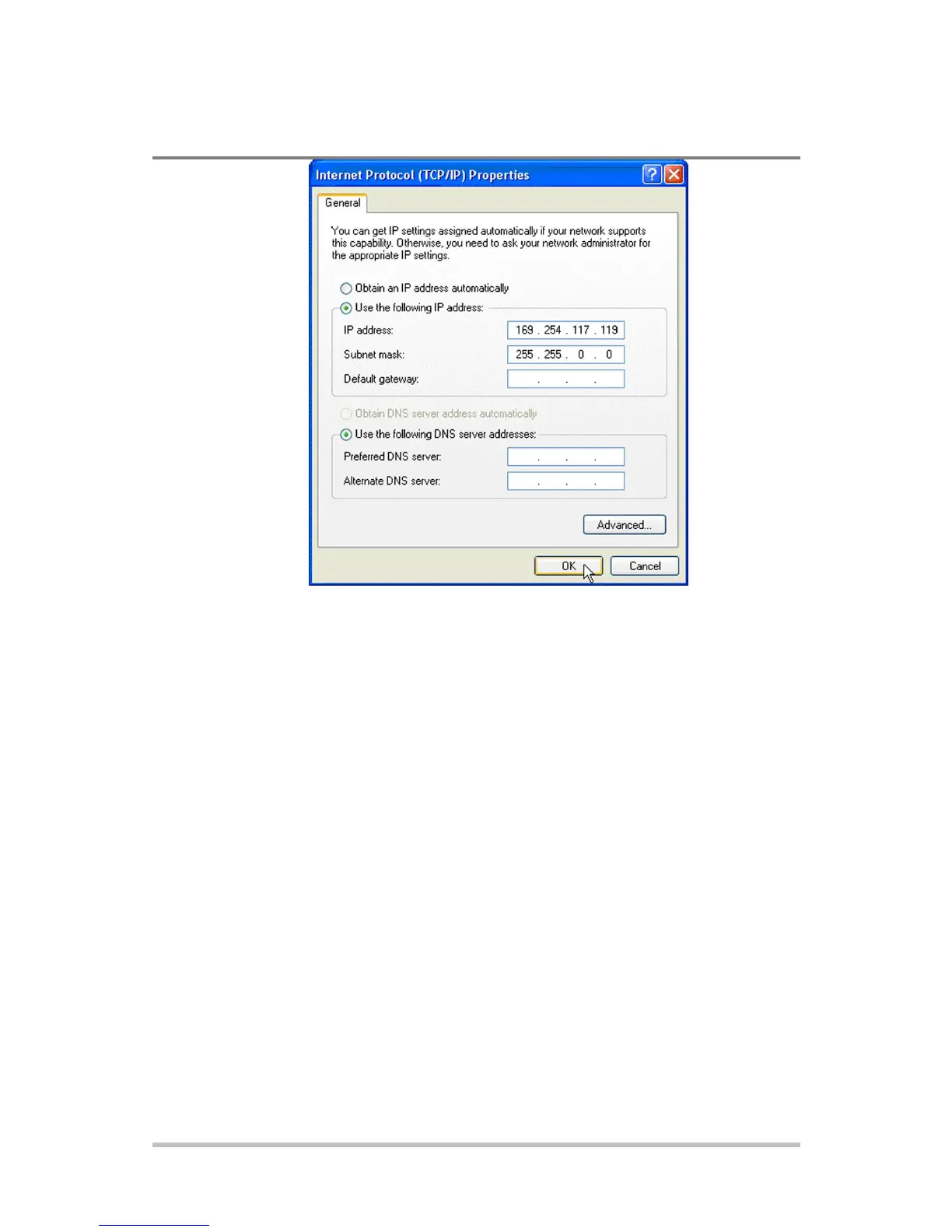 Figure E-3 Internet Protocol (TCP/IP) Properties Dialog Box