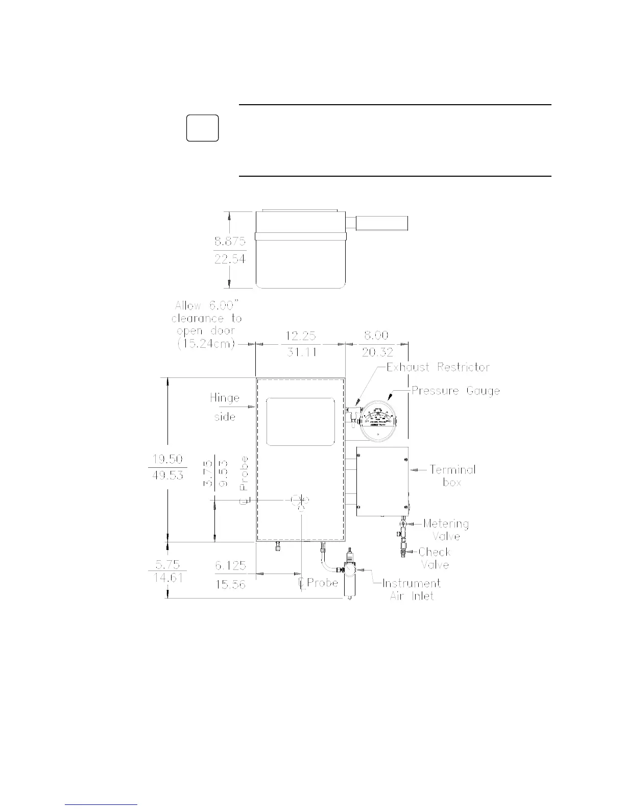 in Figure 3-4. Mounting dimensions for the hinged style enclosure, includ-