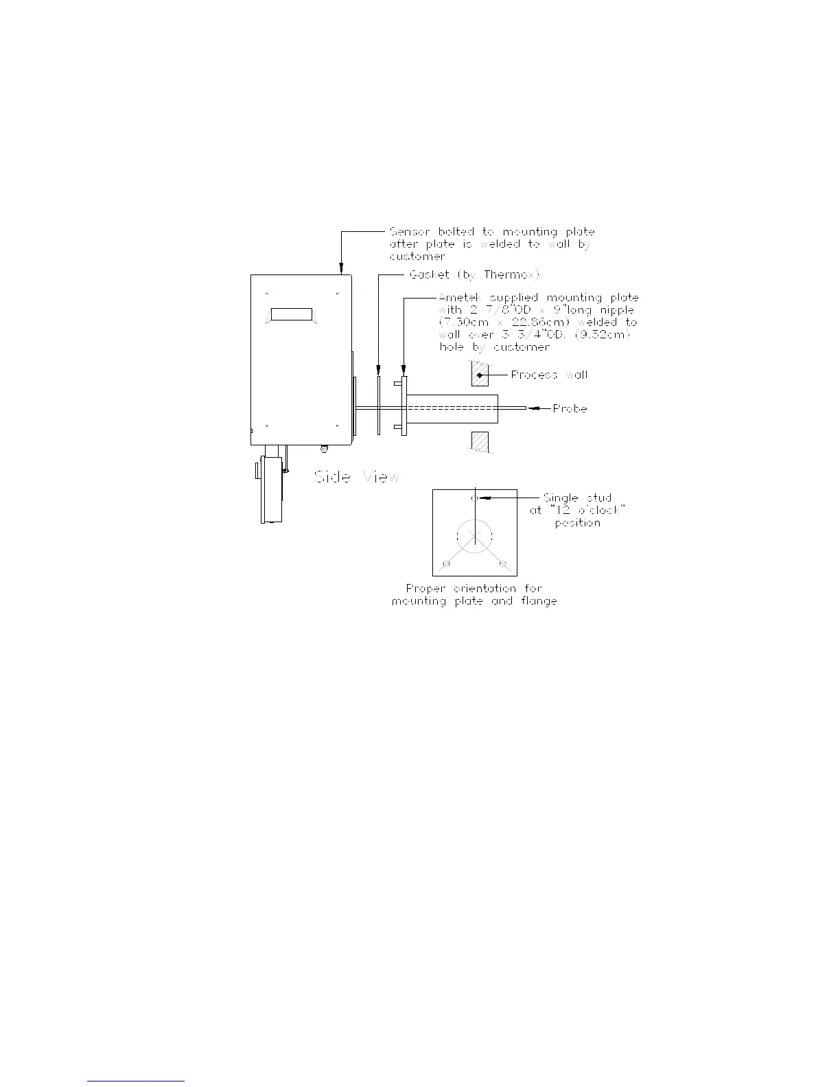 the sensor to the process wall over a 3 3/4” (9.52 cm) diameter hole as