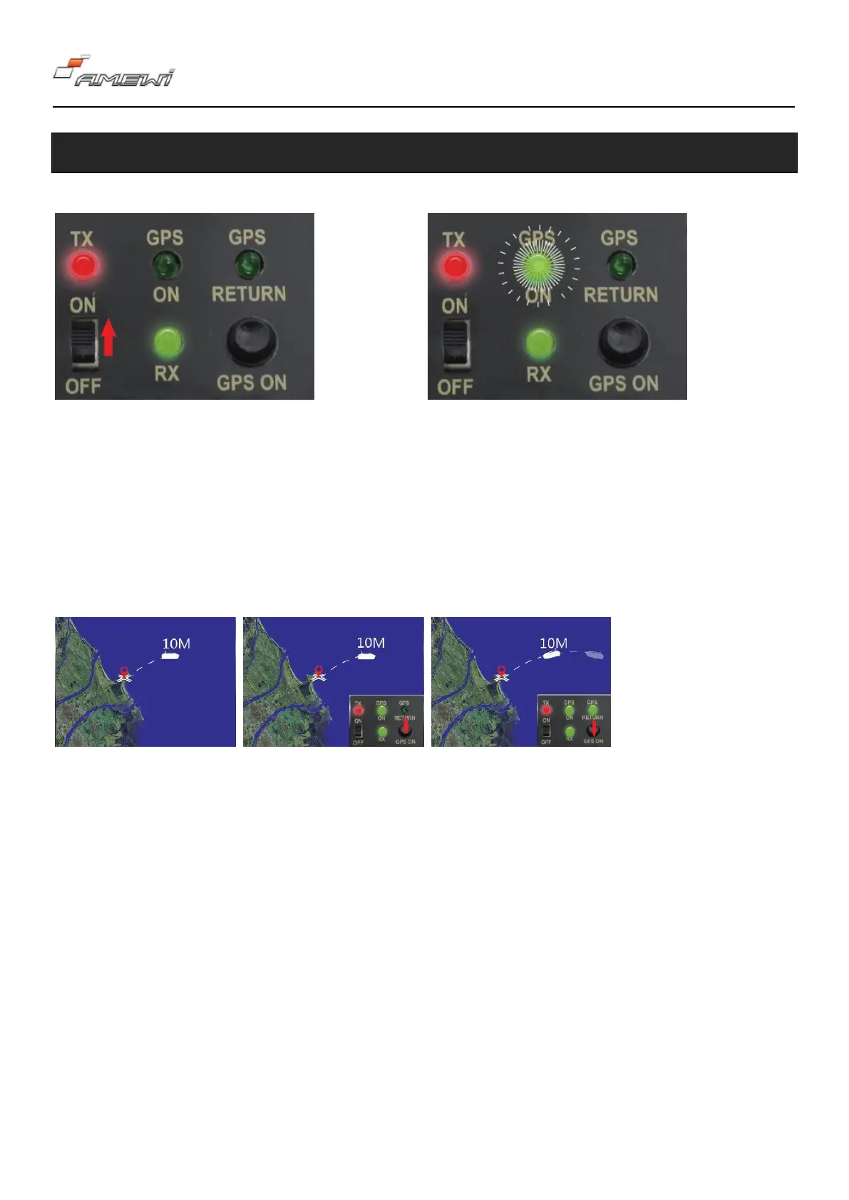 TX, GPS RETURN light will be
