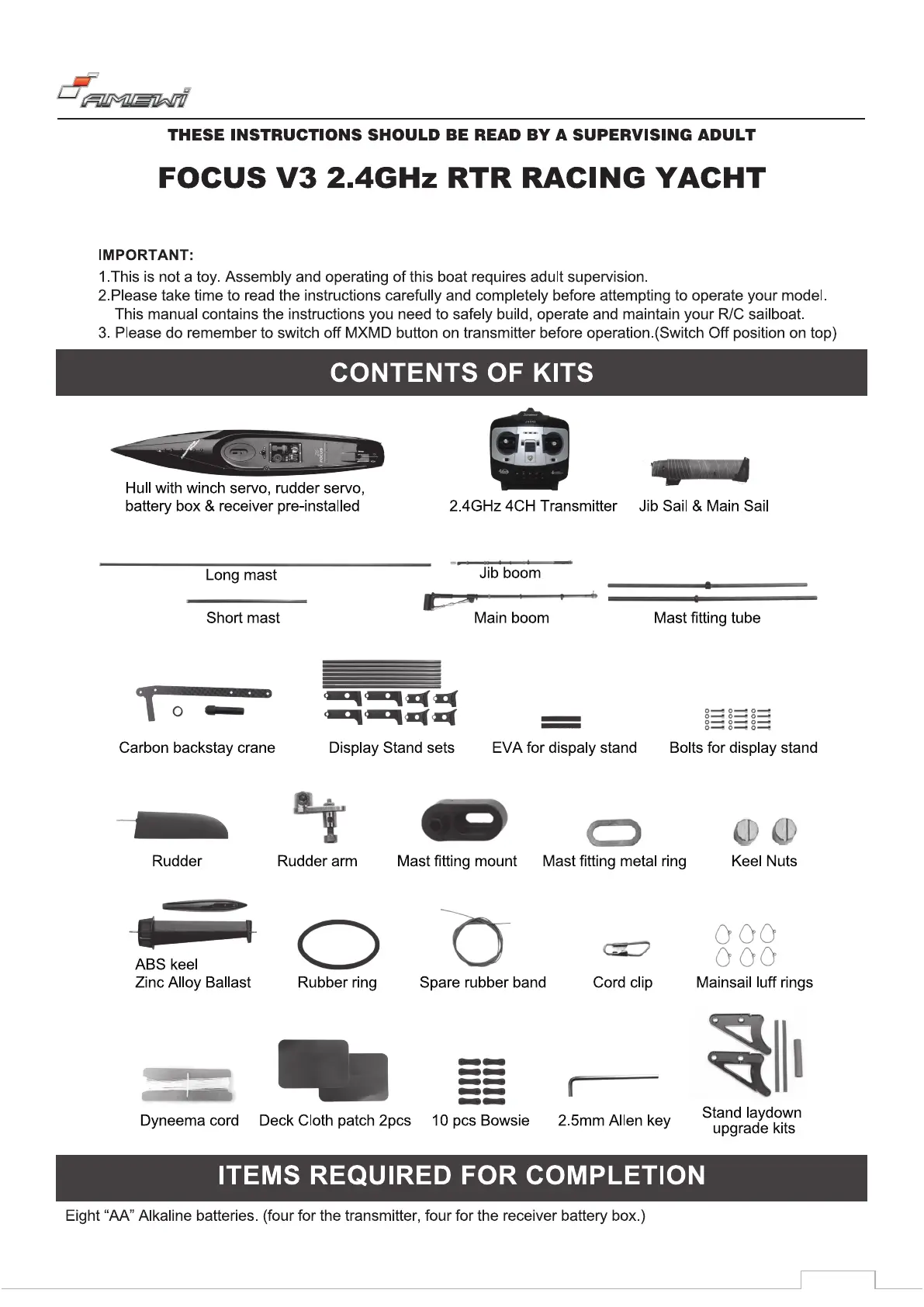Amewi FOCUS V3 - Items Required for Completion (English)