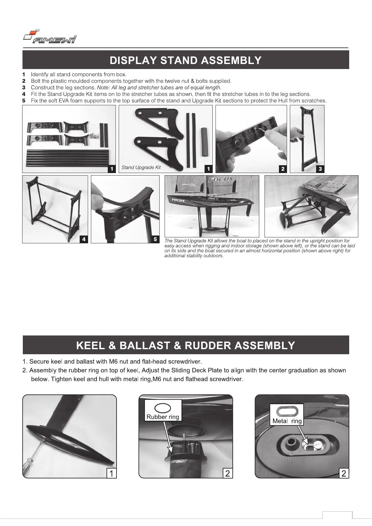Amewi FOCUS V3 - Display Stand Assembly; Keel, Ballast, and Rudder Assembly
