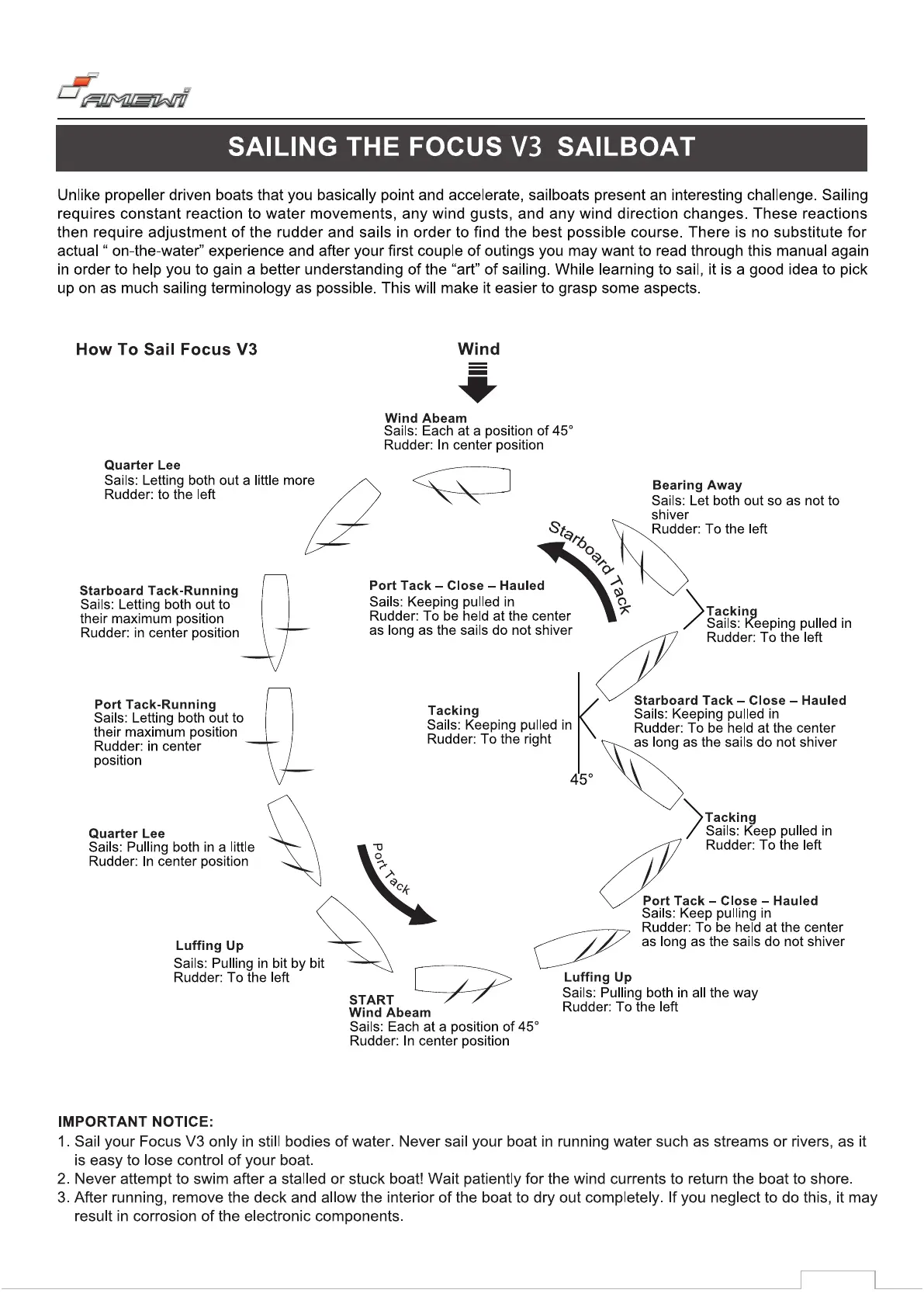 Amewi FOCUS V3 - Sailing the Focus V3 Sailboat; Important Sailing Notices