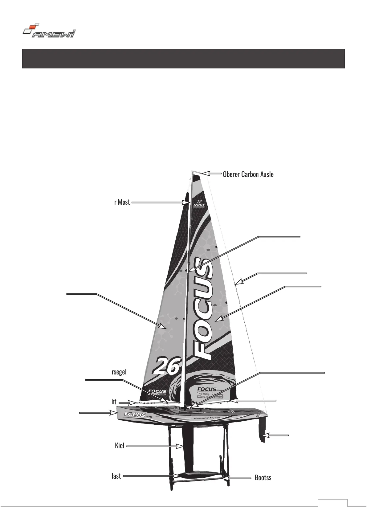 Kiel (Keel): Ein Gegengewicht, welches aus der Unterseite des Rumpfes ragt und zur Stabilisierung dient.