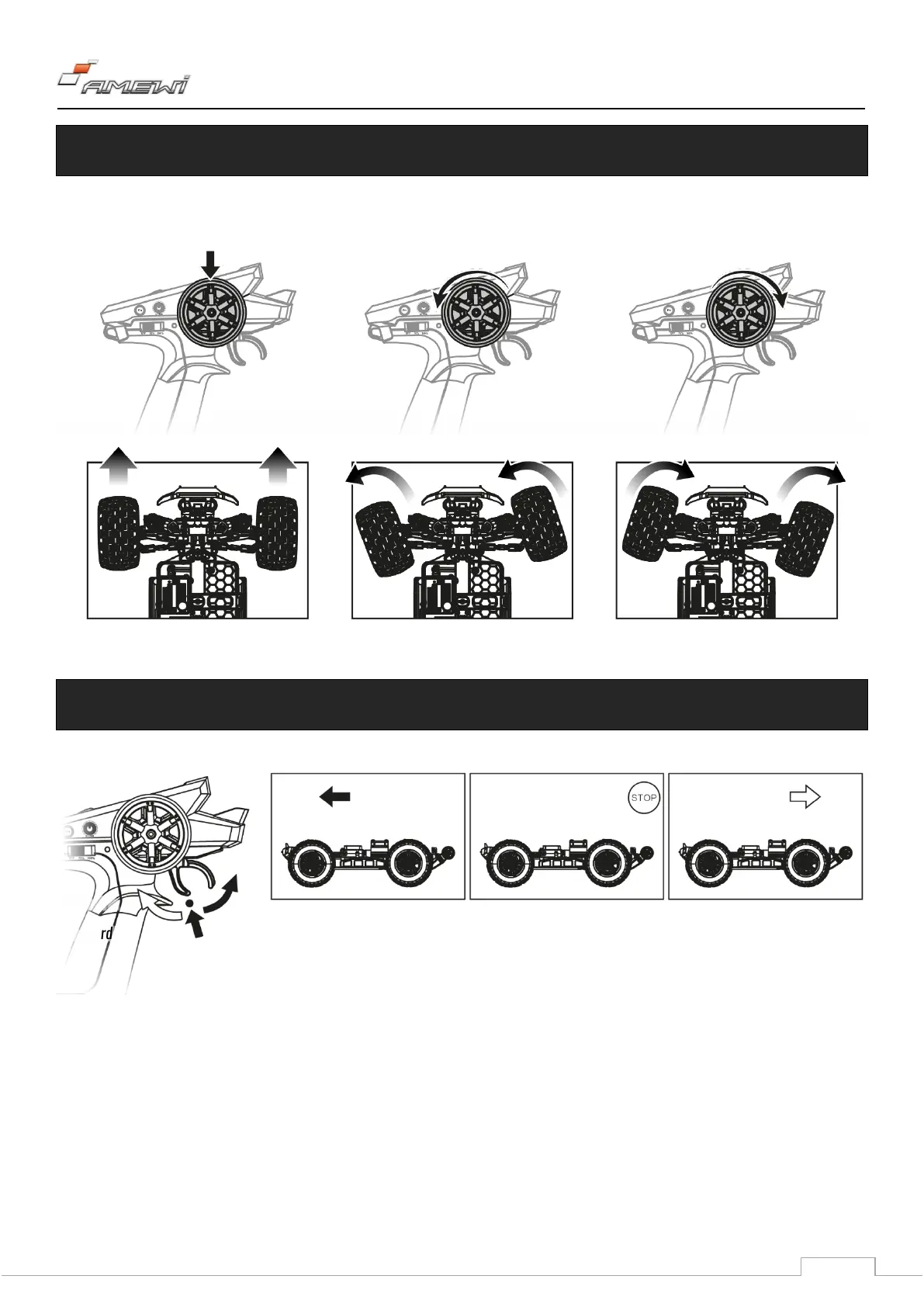 Braking: When the car is moving forward, pull the throttle back, the
