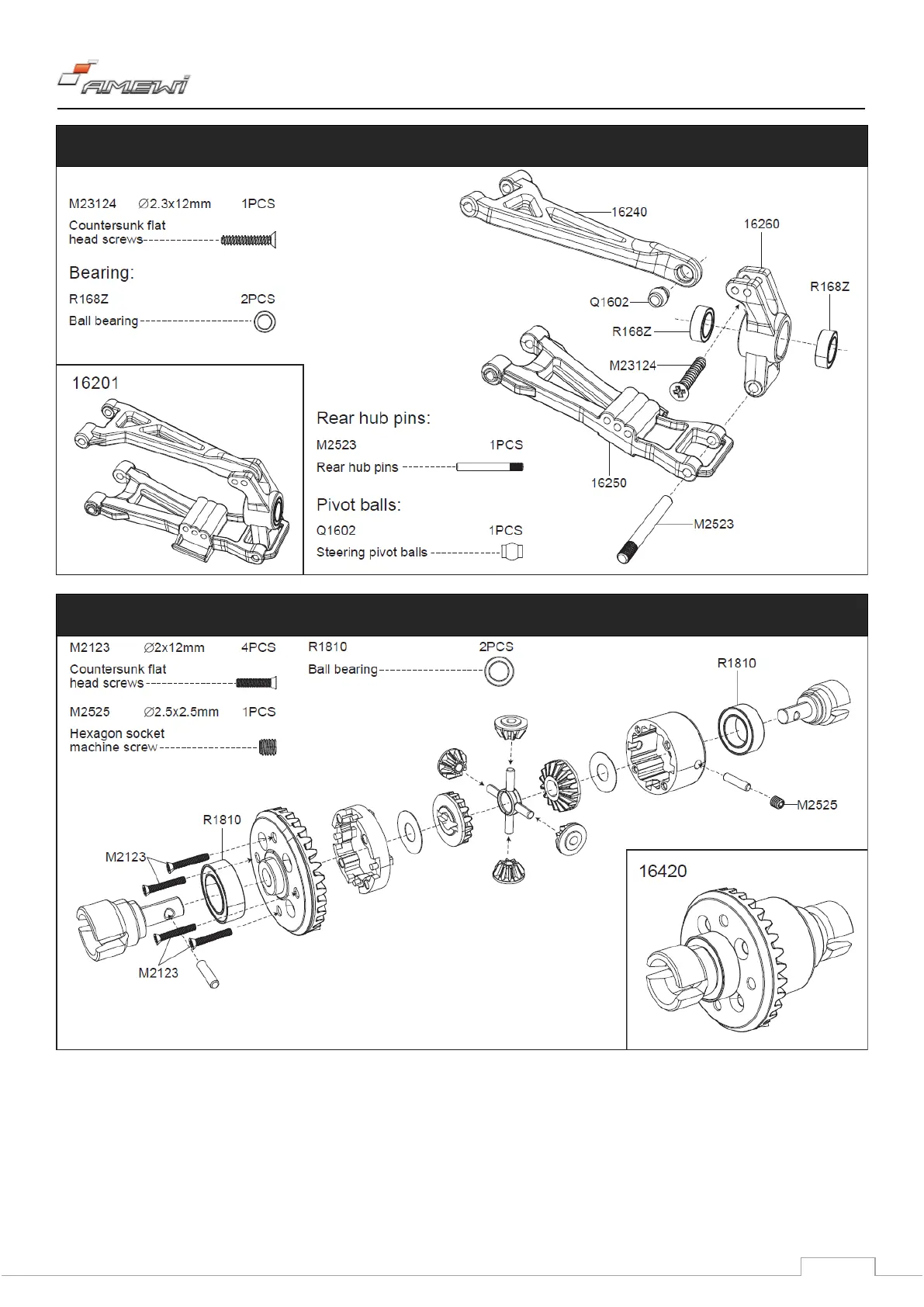 Amewi HYPER GO - Rear Swing Set Assembly; Differential Set Assembly
